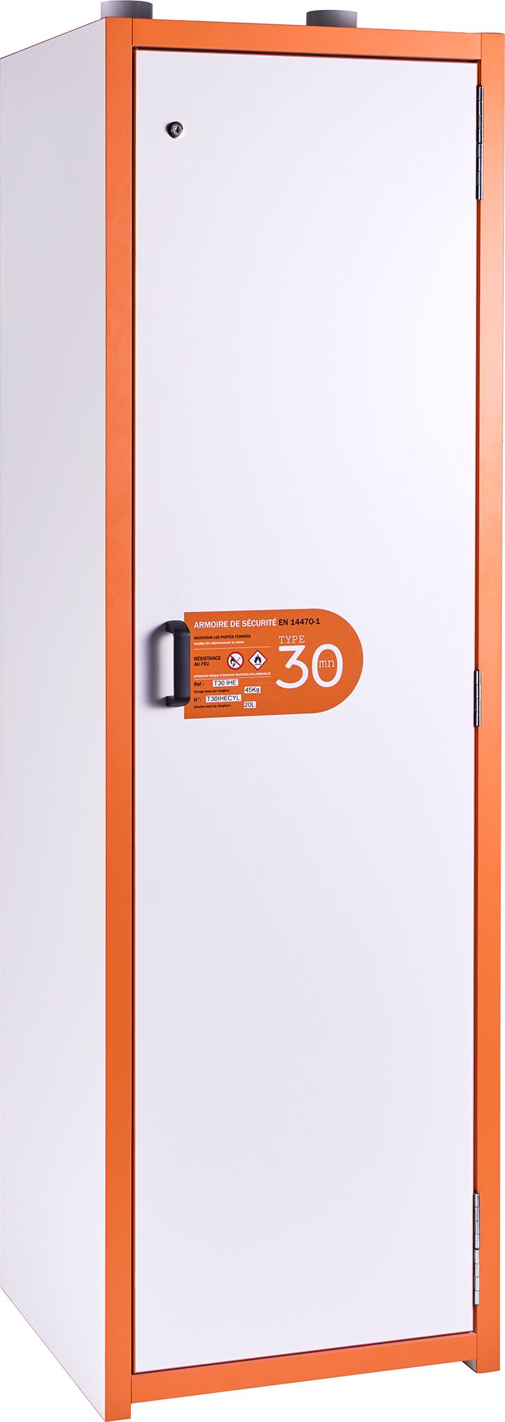 L'armoire de sécurité T30 IHL CYL est une solution de stockage conçue spécifiquement pour les produits inflammables, alliant robustesse et conformité stricte aux normes de sécurité NF EN 14470-1.
