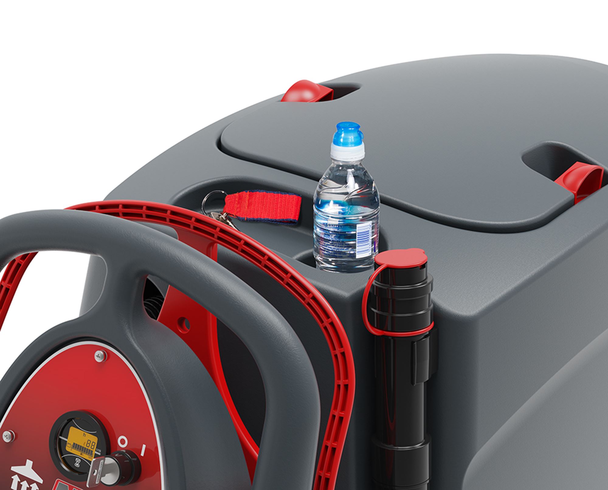 Une énorme capacité de 60 litres, une vitesse de brosse de 100 tr/min et une largeur de lavage de 550 mm, des commandes ergonomiques et un système de charge embarqué pour des résultats de nettoyage puissants.