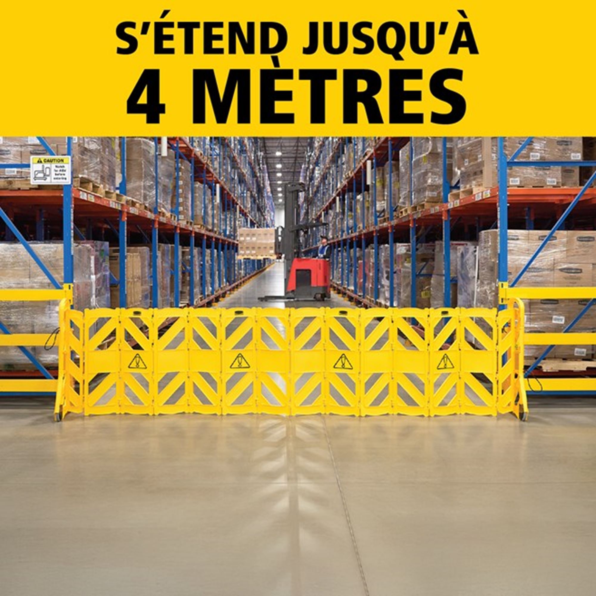 La barrière mobile Rubbermaid est composée de 16 panneaux articulés qui sont facilement dépliable et repliable pour un rangement aisé.