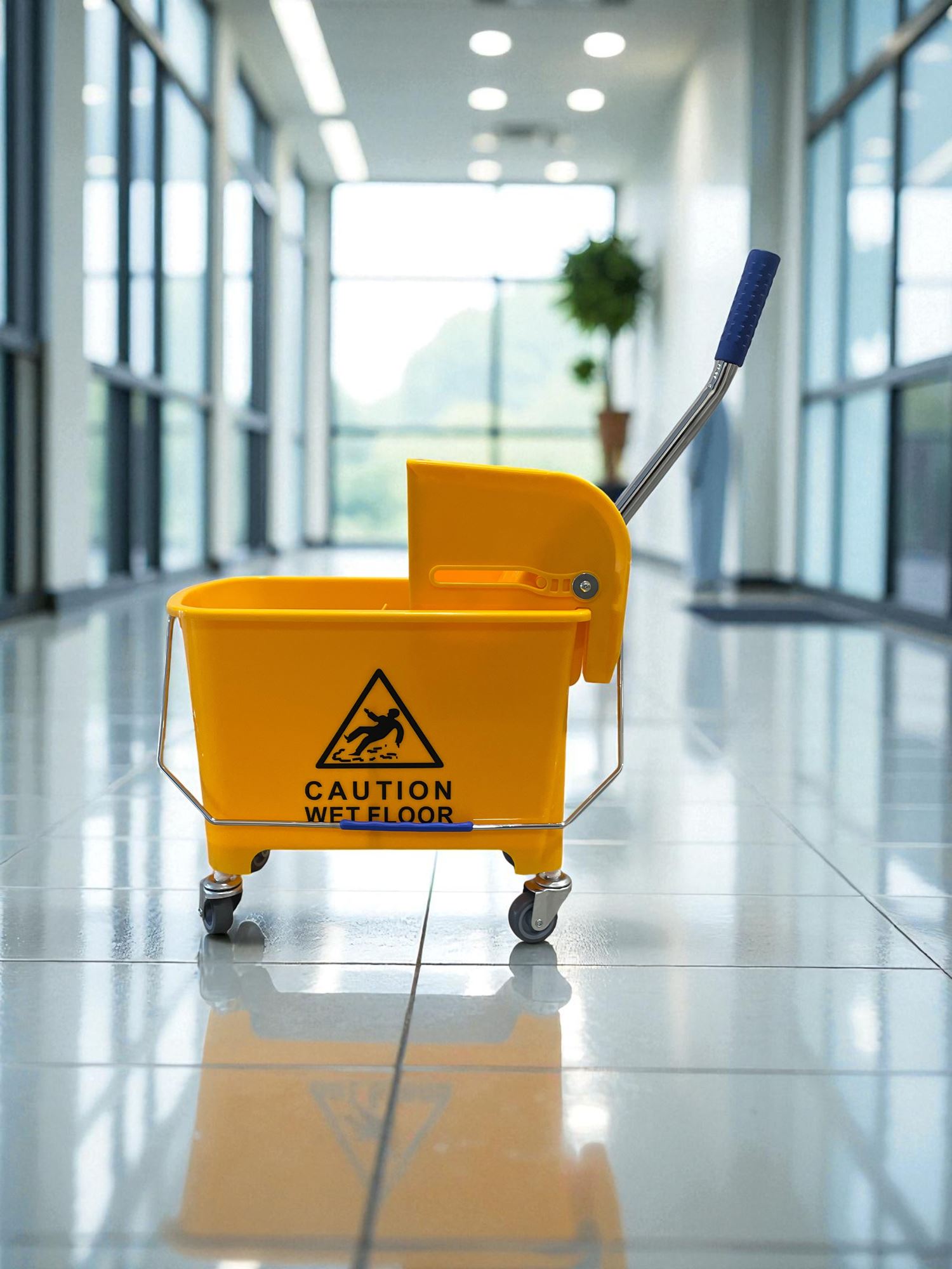 Le chariot de ménage bibac double seau avec presse latérale est l'outils de référence des professionnels en entreprise de nettoyage des sols.