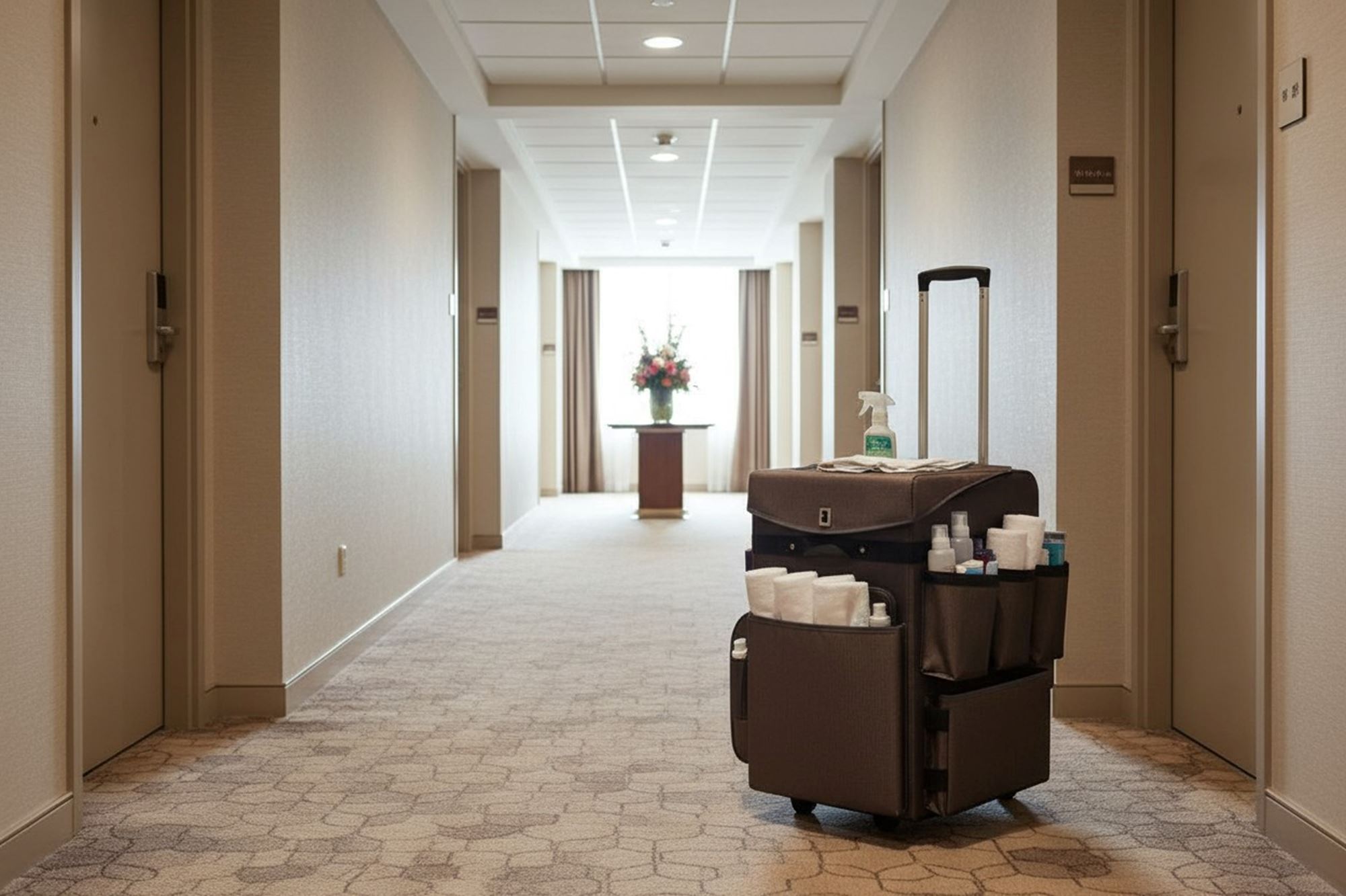 Le chariot d'étage Room Service Cart existe en plusieurs tailles et permet un nettoyage et un passage en chambre avec une discrétion absolue et une ergonomie améliorée pour les agents.