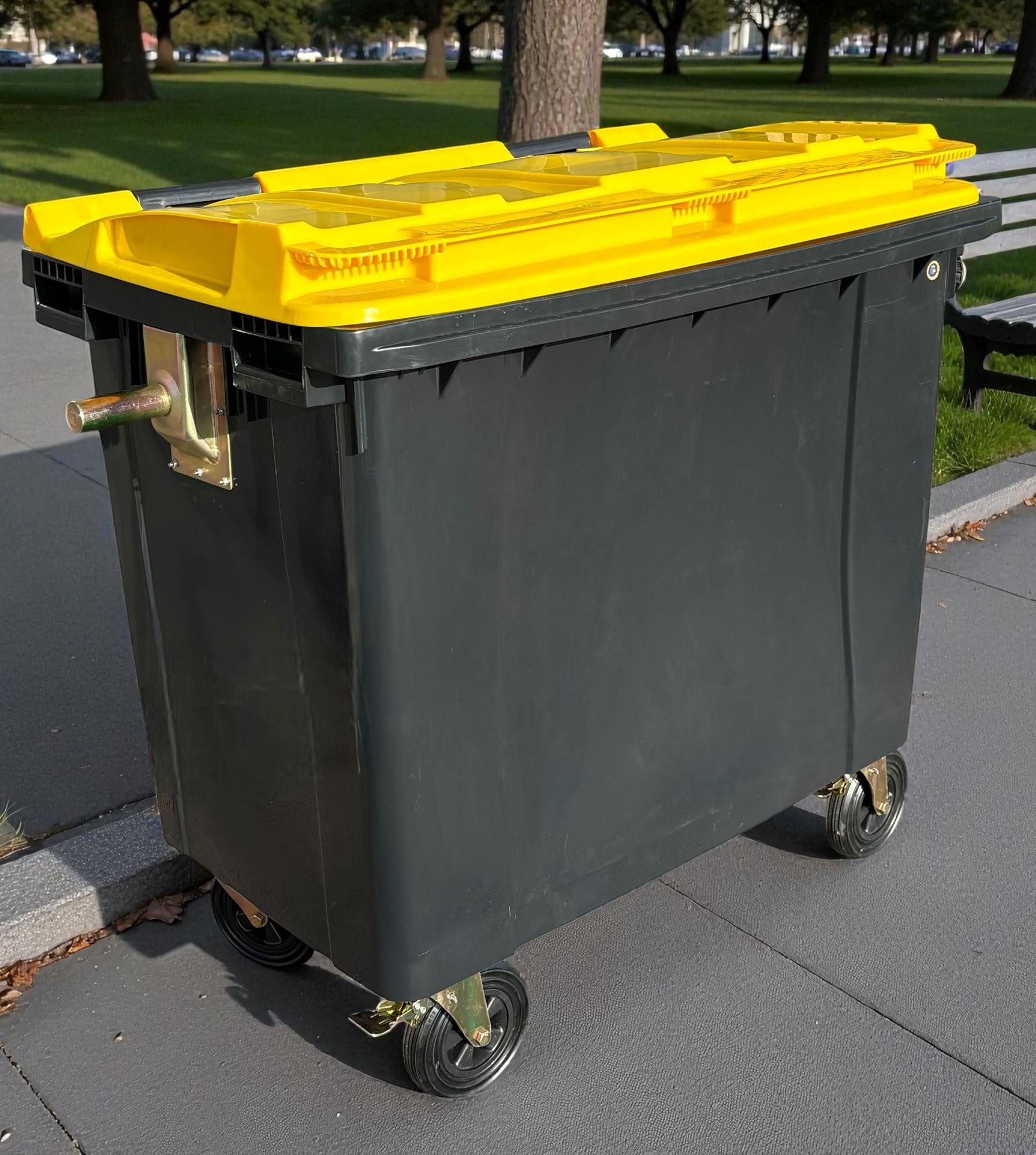 Tout savoir sur poubelle de rue 660 litres couvercle jaune