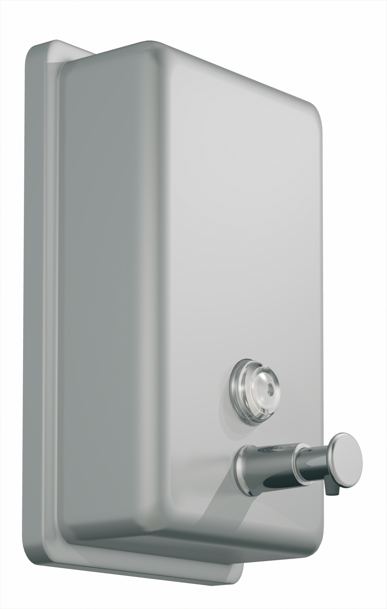 Distributeur de savon liquide inox brossé 304. Système de fixation renforcé. verrouillage du capot à clé. Voyant de niveau translucide. Hauteur 182 mm. Largeur 105 mm. Profondeur 115 mm. Antivandalisme. Contenance 850 ml.
