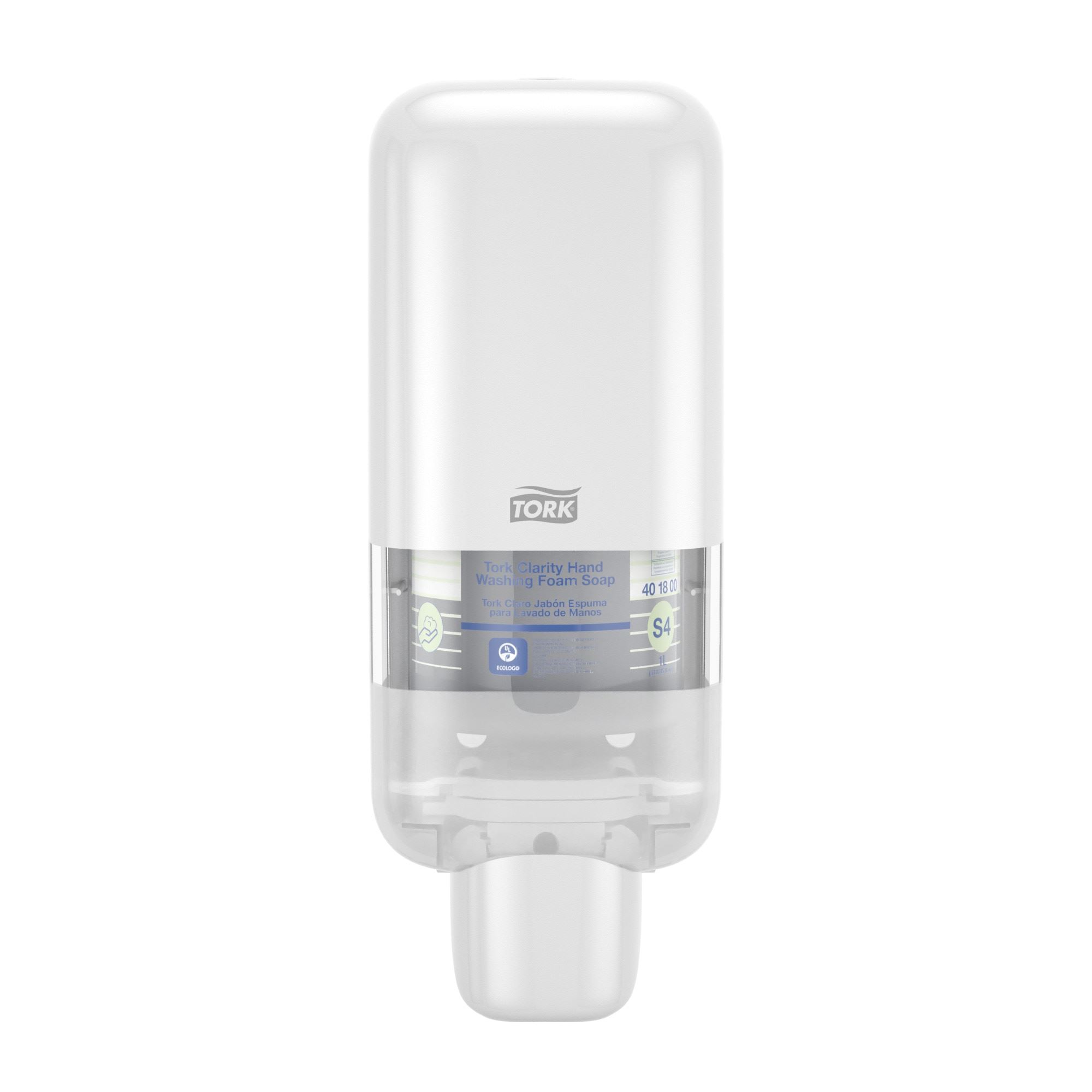 Le distributeur de savon mousse Tork S4 accepte les cartouches Tork S4 1000 ml. La capacité et la formule mousse de la cartouche S4 offre une autonomie de 2500 doses. Coloris blanc.