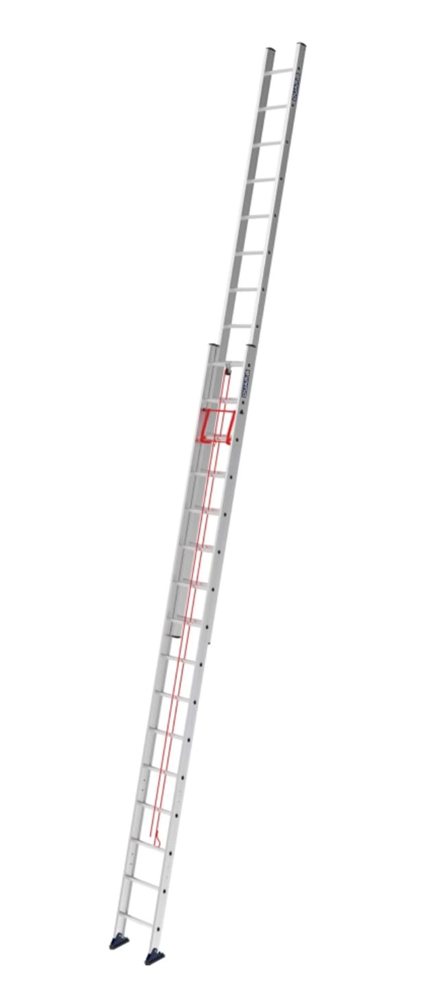 Echelle d'incendie et de secours coulissante 2 plans. Parachute renforcé en acier traité. Testé à 575 kg. Profil fermé surdimensionne conçu pour supporter le poids de 2 personnes. Corde traitée anti uv. restistance à la rupture supérieure à 400 kg.