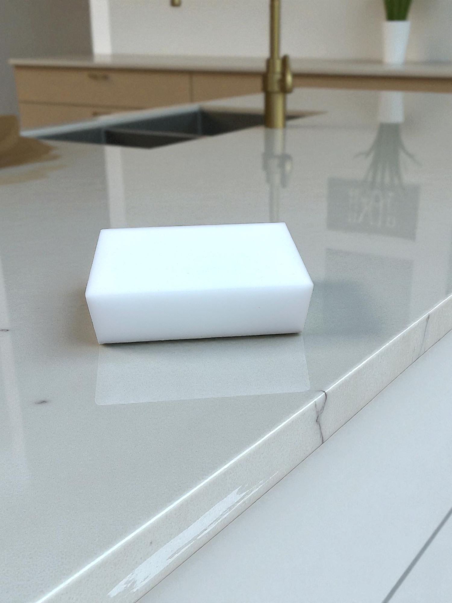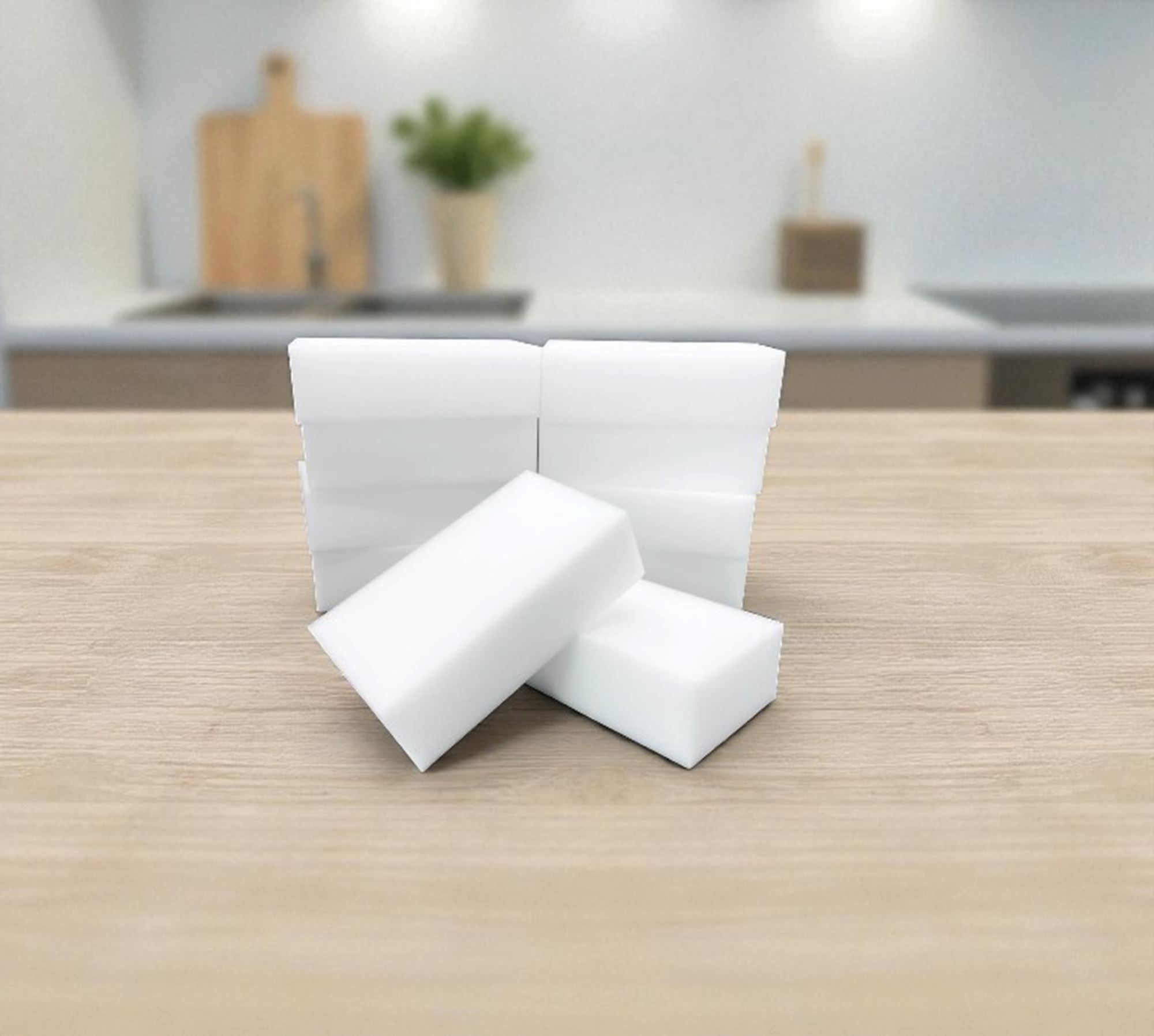 L'éponge magique à base de mélamine permet d'éliminer beaucoup de taches tels que: les taches de graisse, de calcaire, d'empreintes de doigts, de dépôts de café ou thé, les marqueurs et stylo....