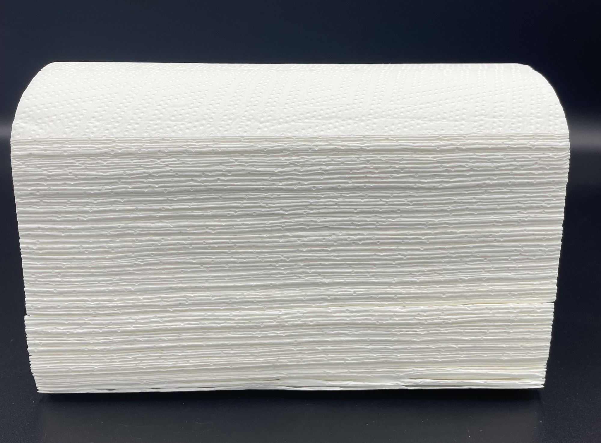 Essuie mains papier pure ouate de cellulose avec pliage en V. Belle blancheur de papier. Certifié Ecolabel et PEFC. Contact alimentaire pour usage en restauration et collectivités. Feuille de 20x21. Colis de 3000.