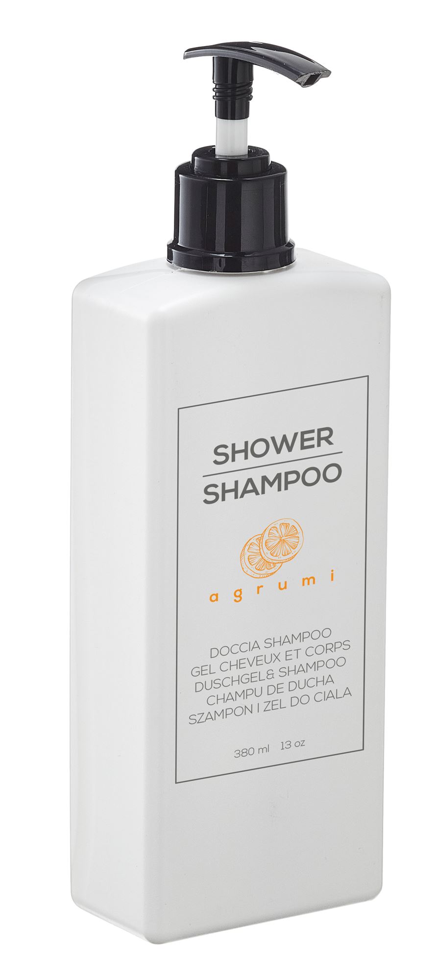 Gel douche 2en1: corps et cheveux, un seul produit pour une hygiène complète. Flacon rectangulaire de 380ml. Parfum agrumes.