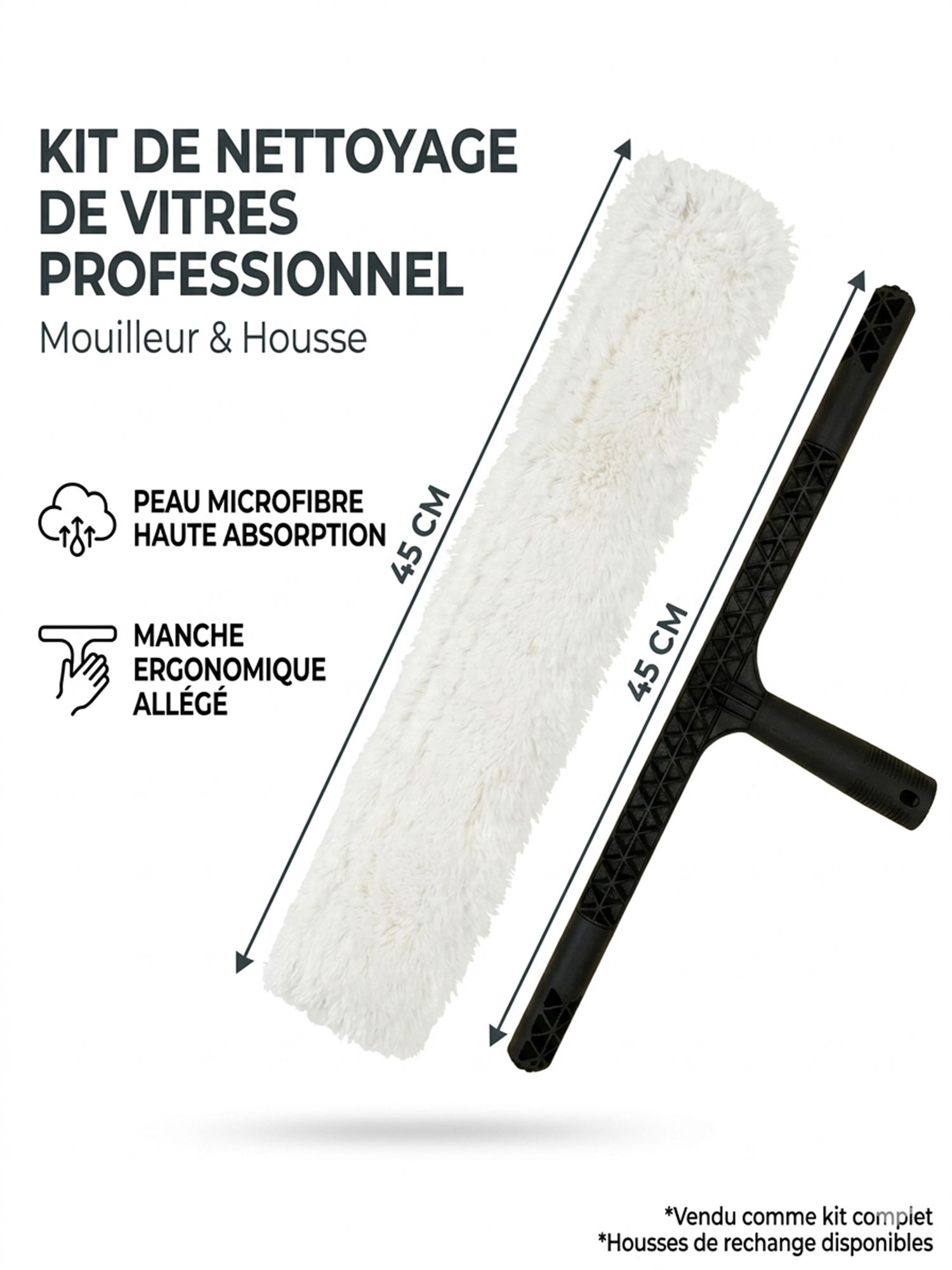 Mouilleur vitres textile complet 45 cm