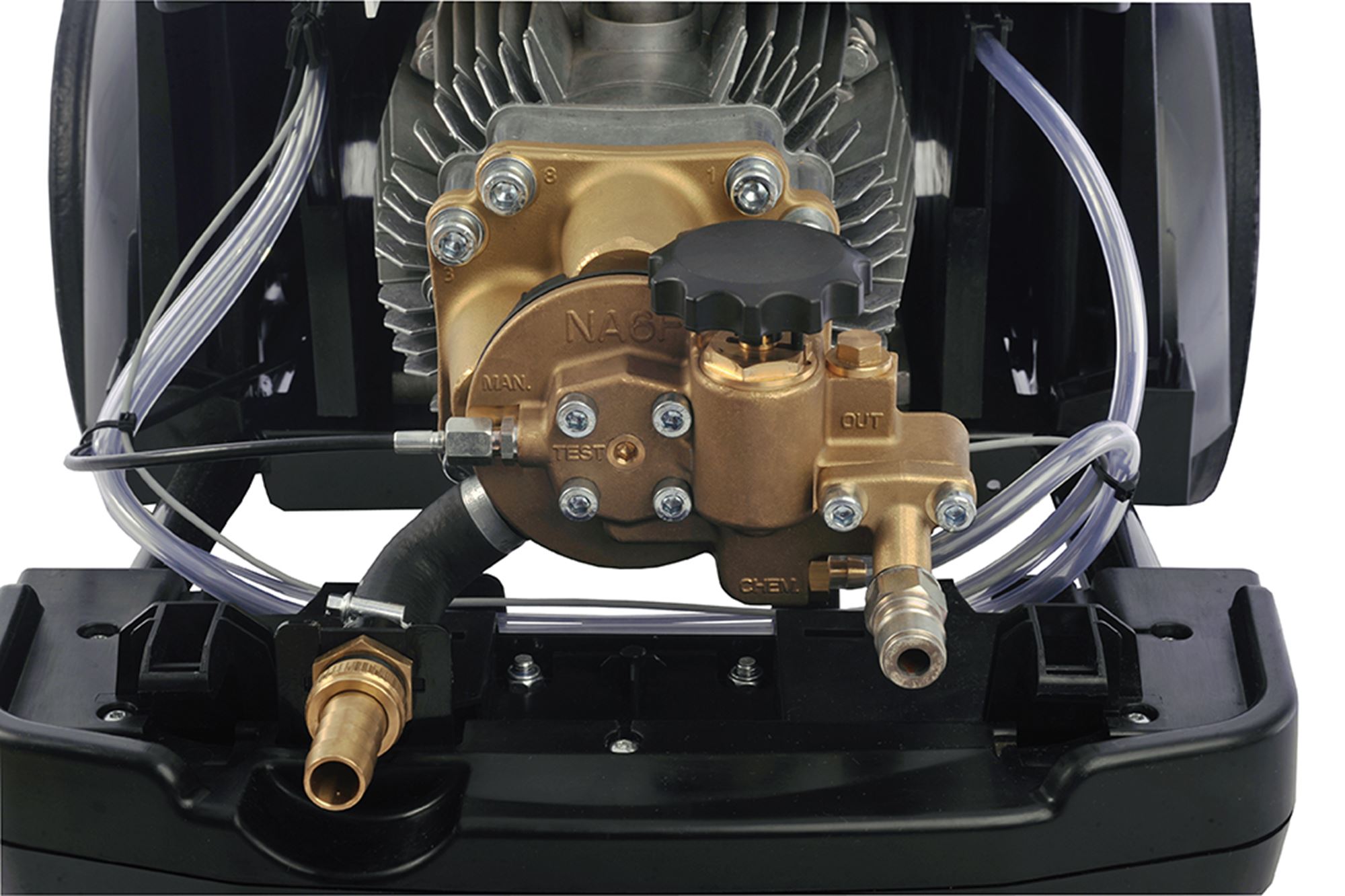 La gamme MC 6P est équipé de la pompe NA6, 4 pistons en céramique et culasse laiton pour un usage intensif