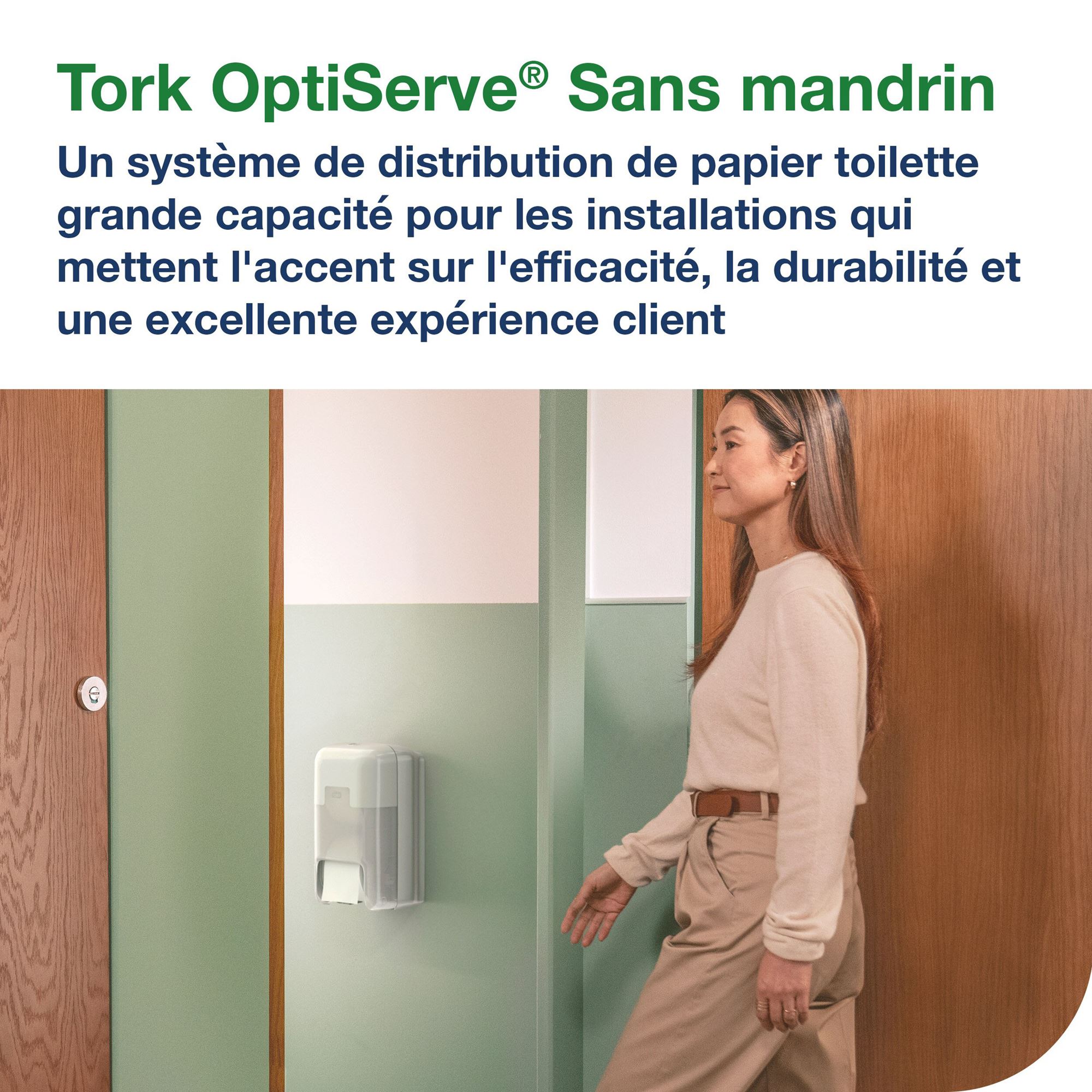 - Expérience client améliorée: Avec son papier doux et résistant, le Tork OptiServe® assure un confort optimal pour les utilisateurs, les fidélisant par une expérience agréable et qualitative.