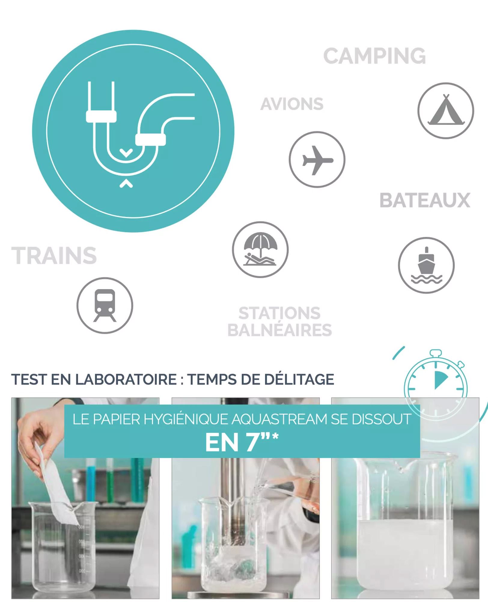 Le papier toilette Aquastream se dissout dans l'eau en 7 secondes. Ce papier toilette en petit rouleau 200 feuilles à dissolution rapide est idéal pour bateau, camping, hôtel, trains, stations balnéaires mais aussi dans les entreprises ayant un soucis de canalisation récurrent.