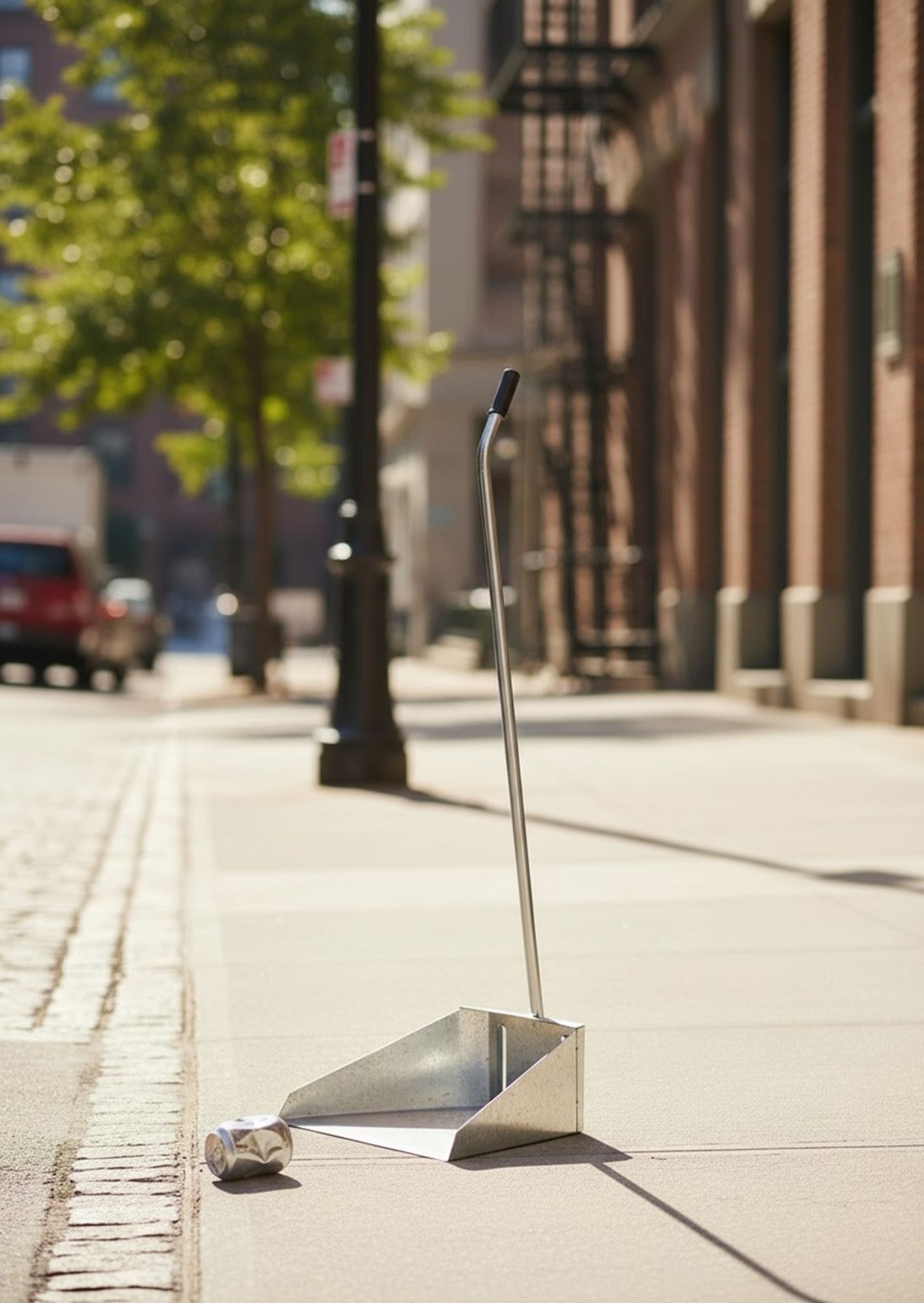 Pelle à poussière en métal manche droit