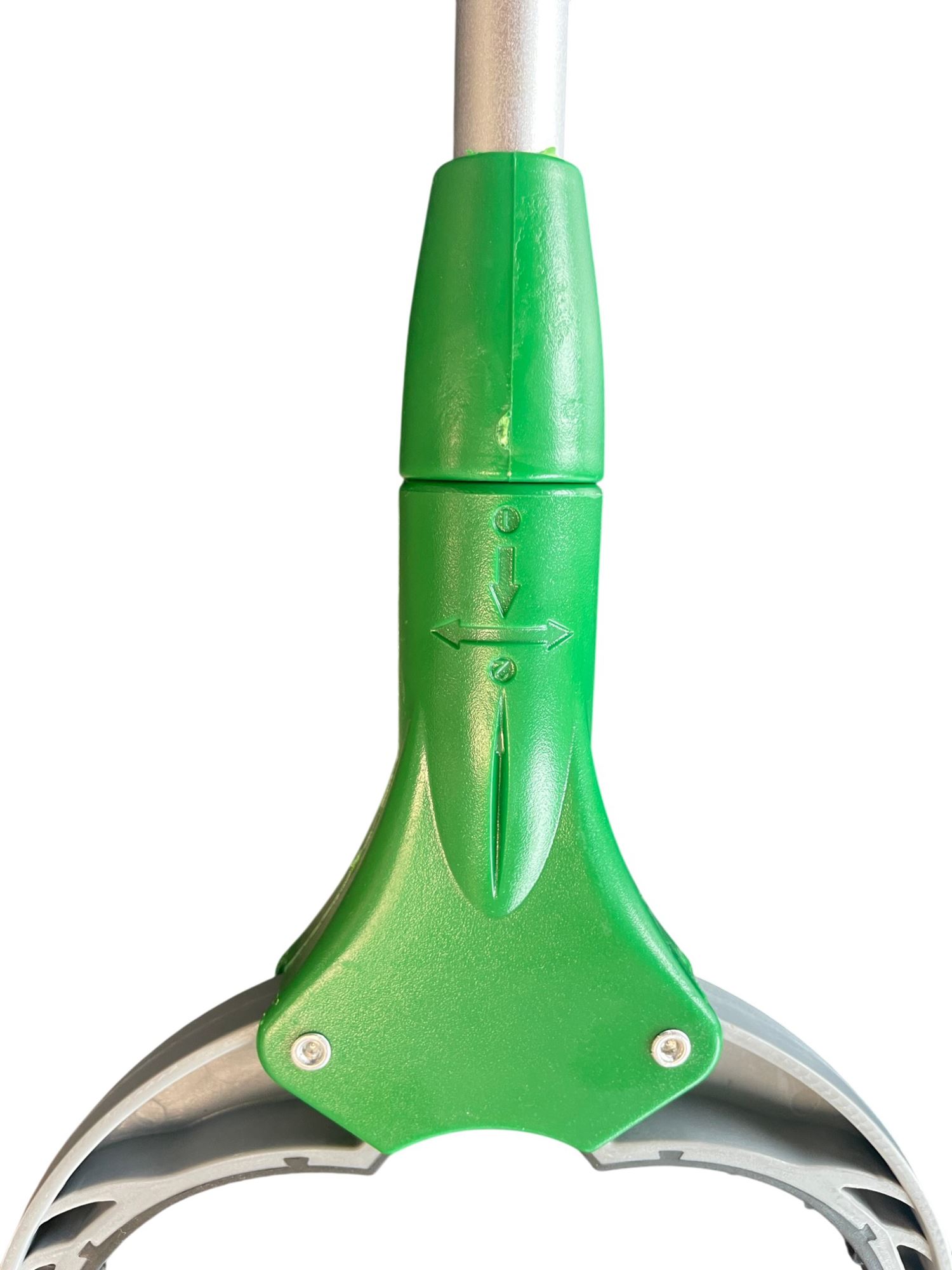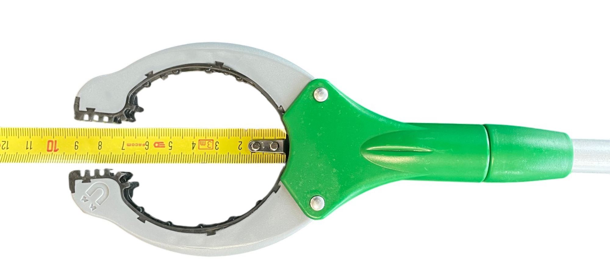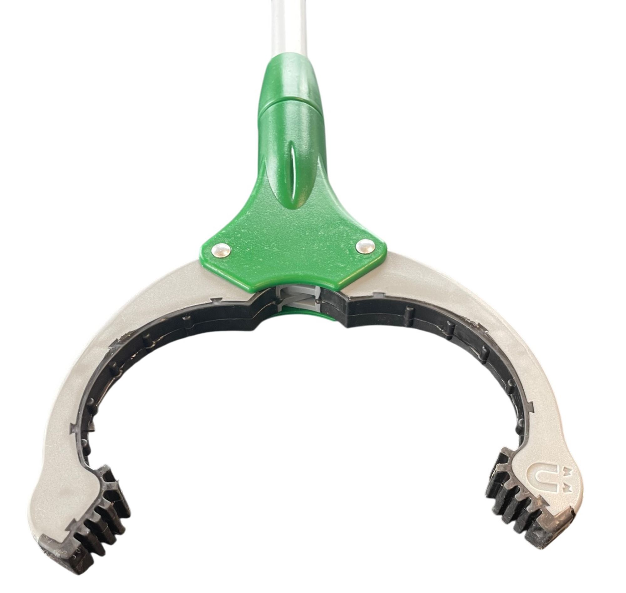 Pince ramasse déchet professionnelle 85 cm en aluminium. Tête orientable 180 °. Griffes anti dérapantes. Partie aimantée pour le ramassage des objets métalliques. Très légère.