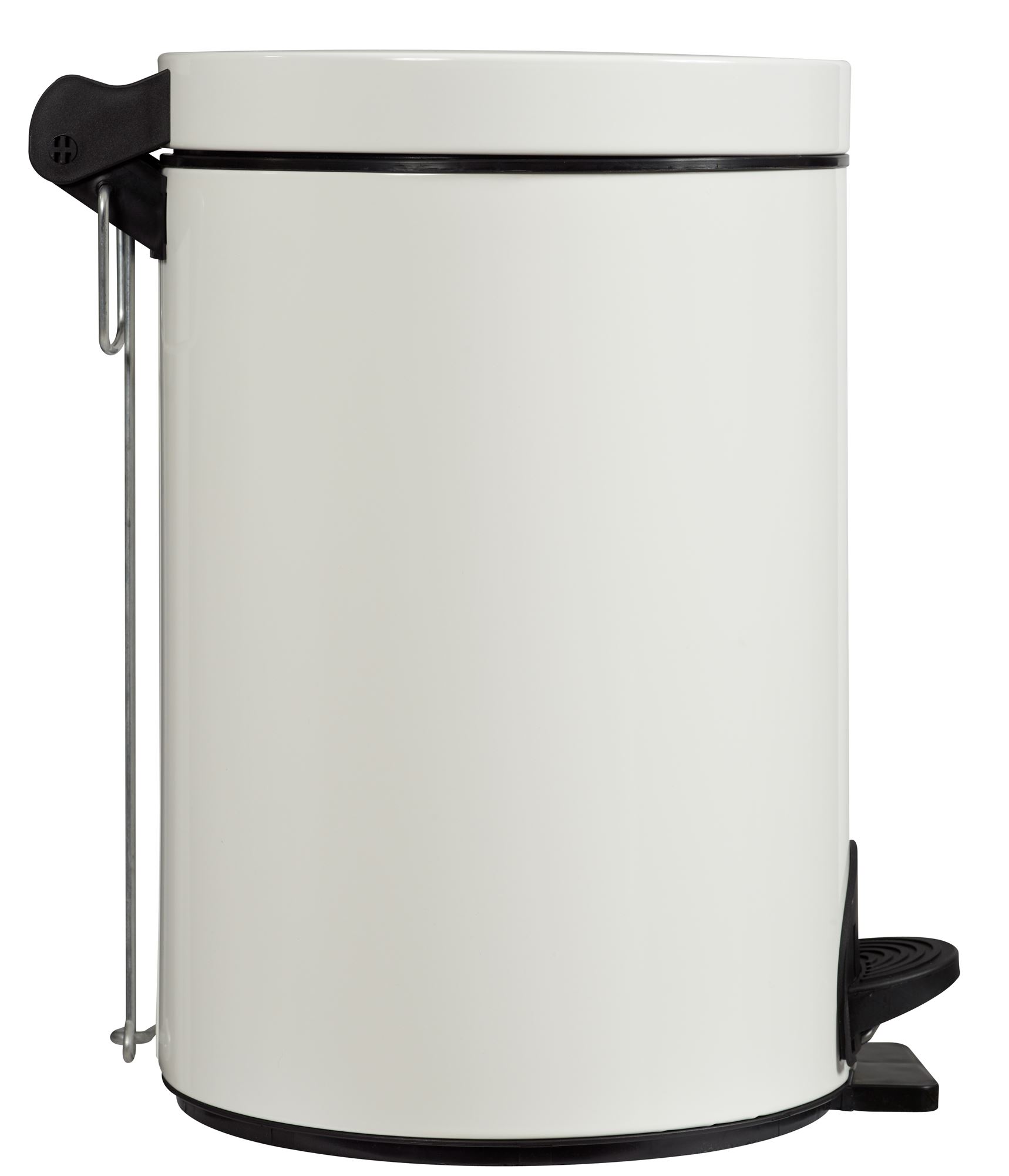 Poubelle à pédale métal 14L blanc Rossignol avec seau anti-bactérien. Acier poudré époxy intérieur et extérieur. Socle plastique anti-basculement. Tringlerie en acier galvanisé. Fabriquée en France !