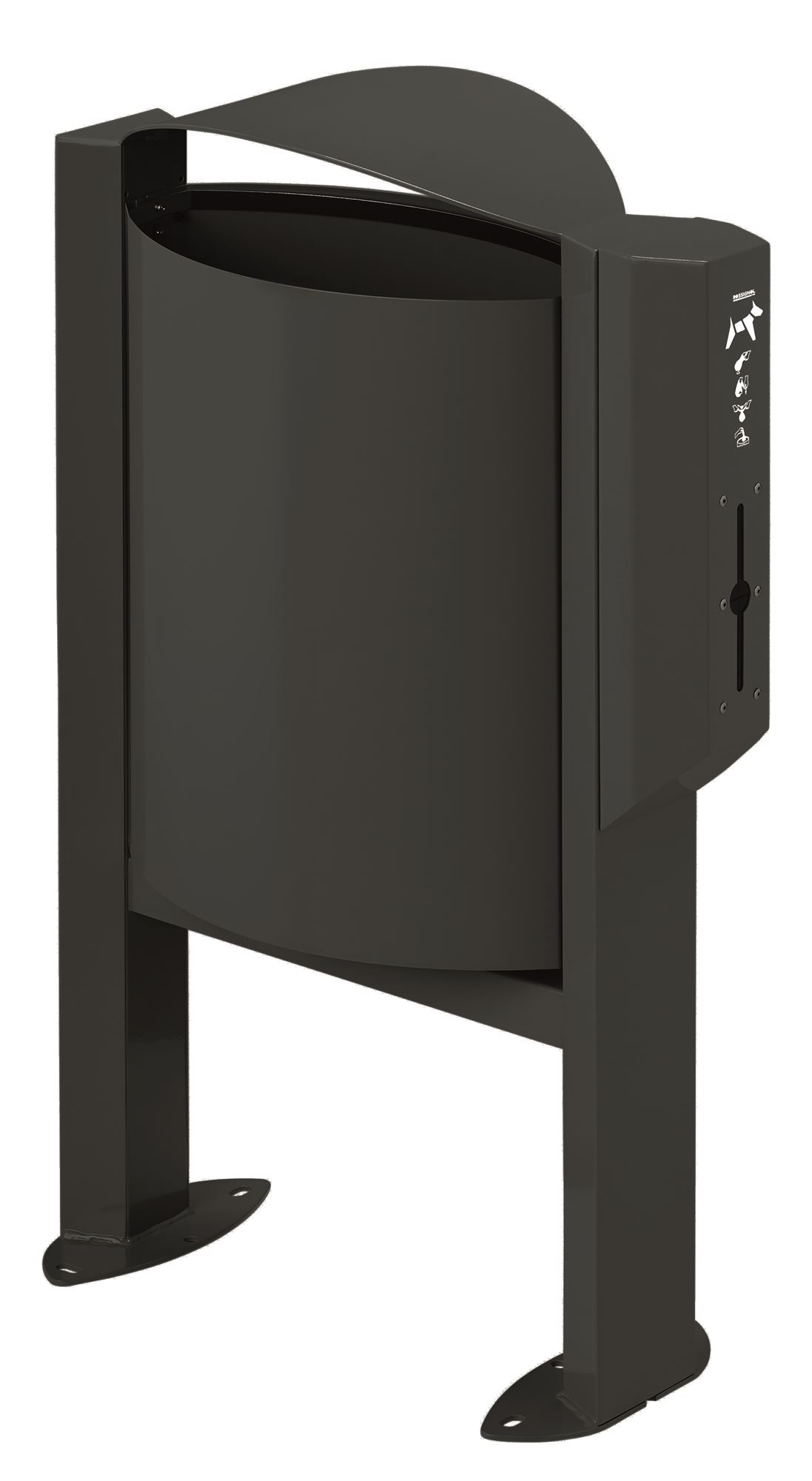 La poubelle Arkea canin intègre une corbeille 40L sur pied et un distributeur de sachet propreté canine. Coloris anthracite. Fabrication France Rossignol.