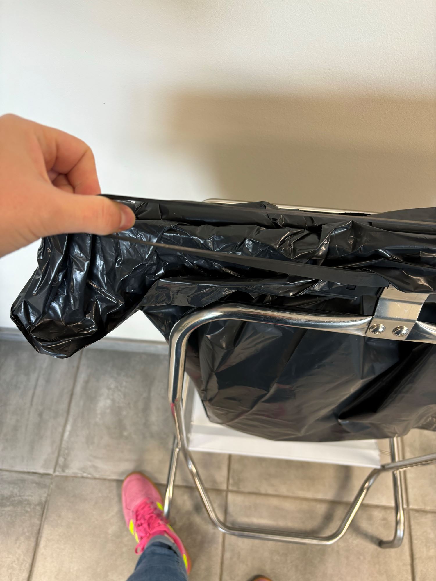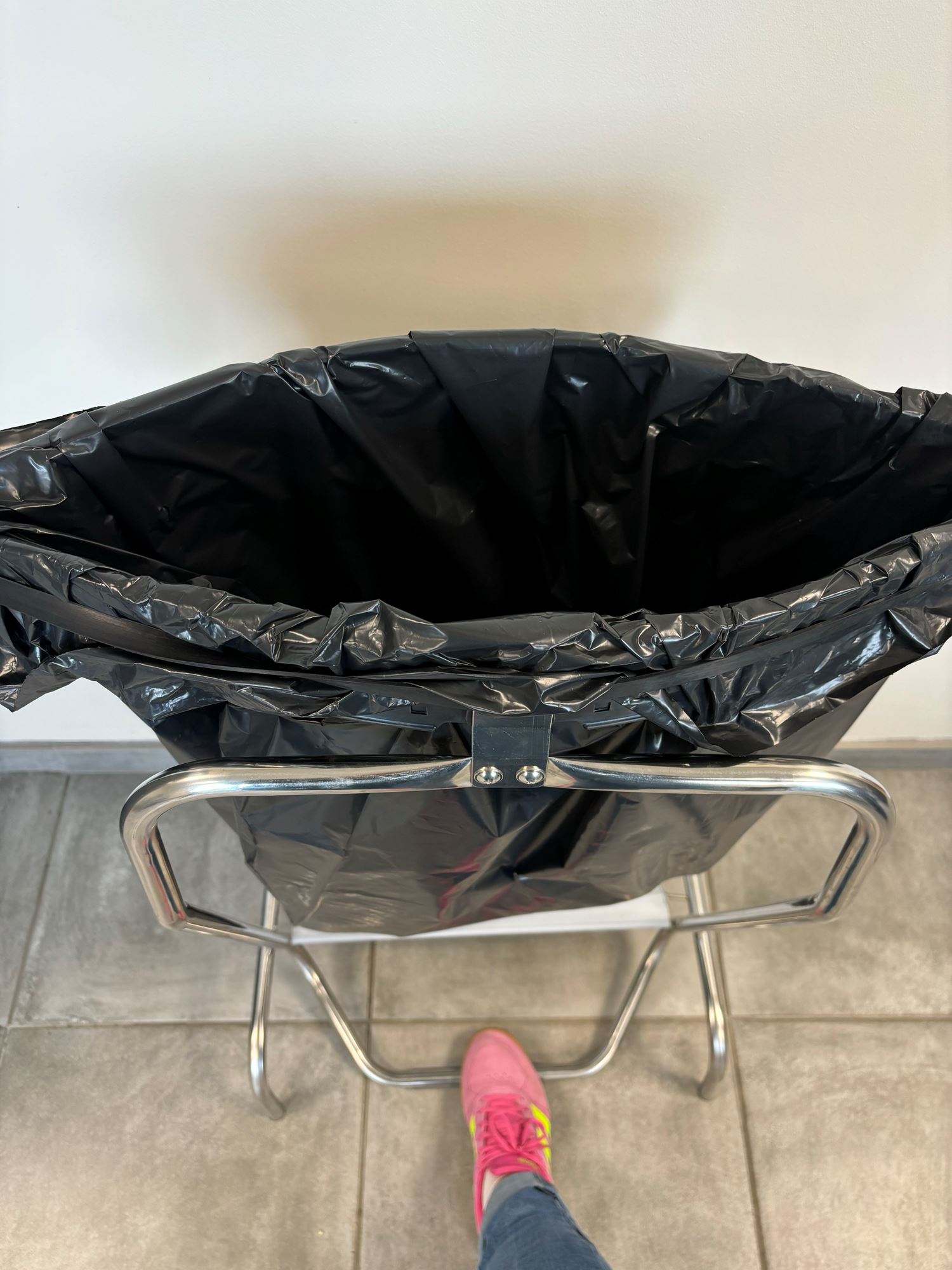 Le sac poubelle est pincé ce qui assure une fermeture hermétique pour isoler les déchets et réduire les odeurs.