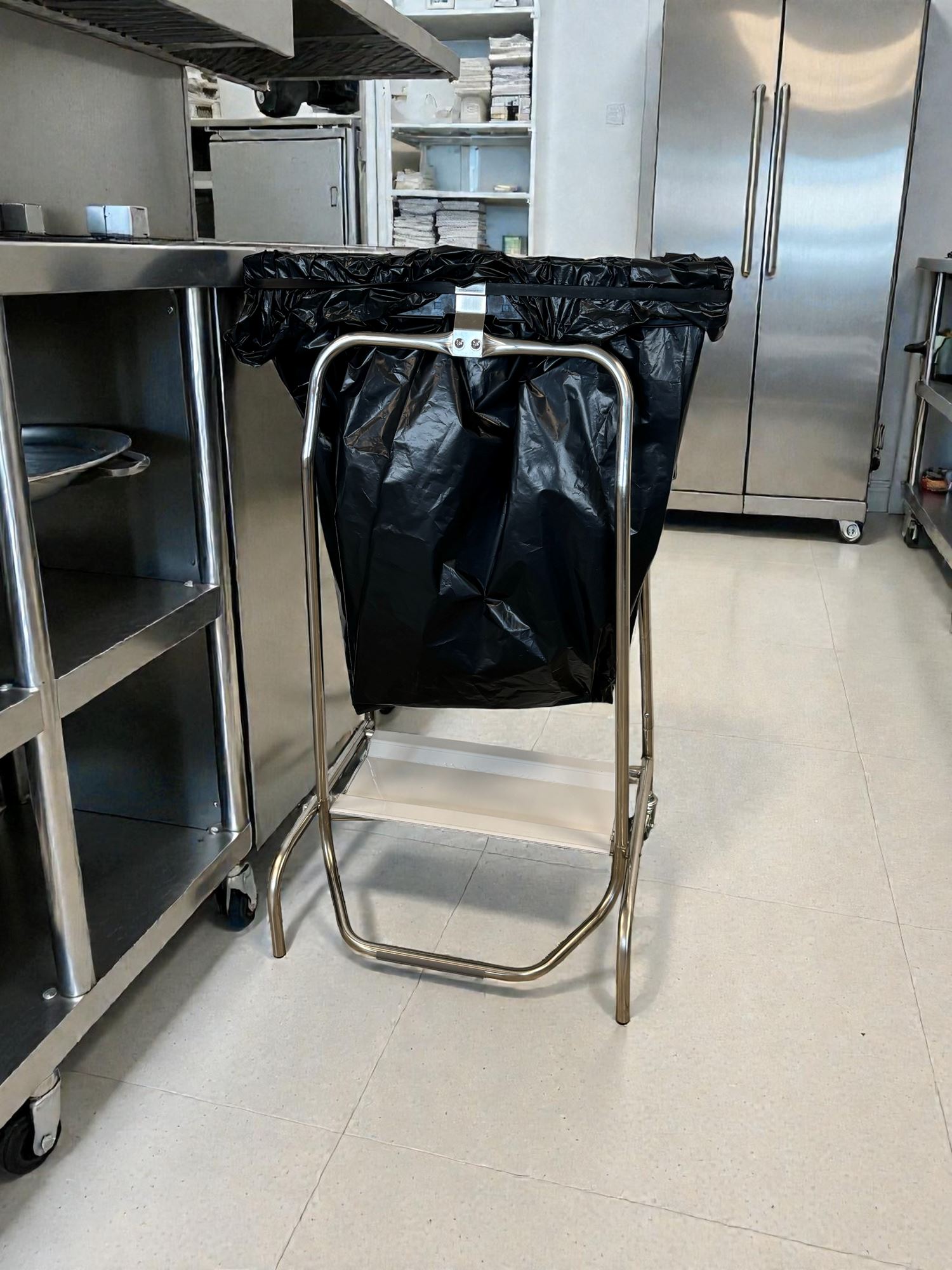 Ce porte sac poubelle cuisine à clapet est en inox avec une capacité de 110 litres.