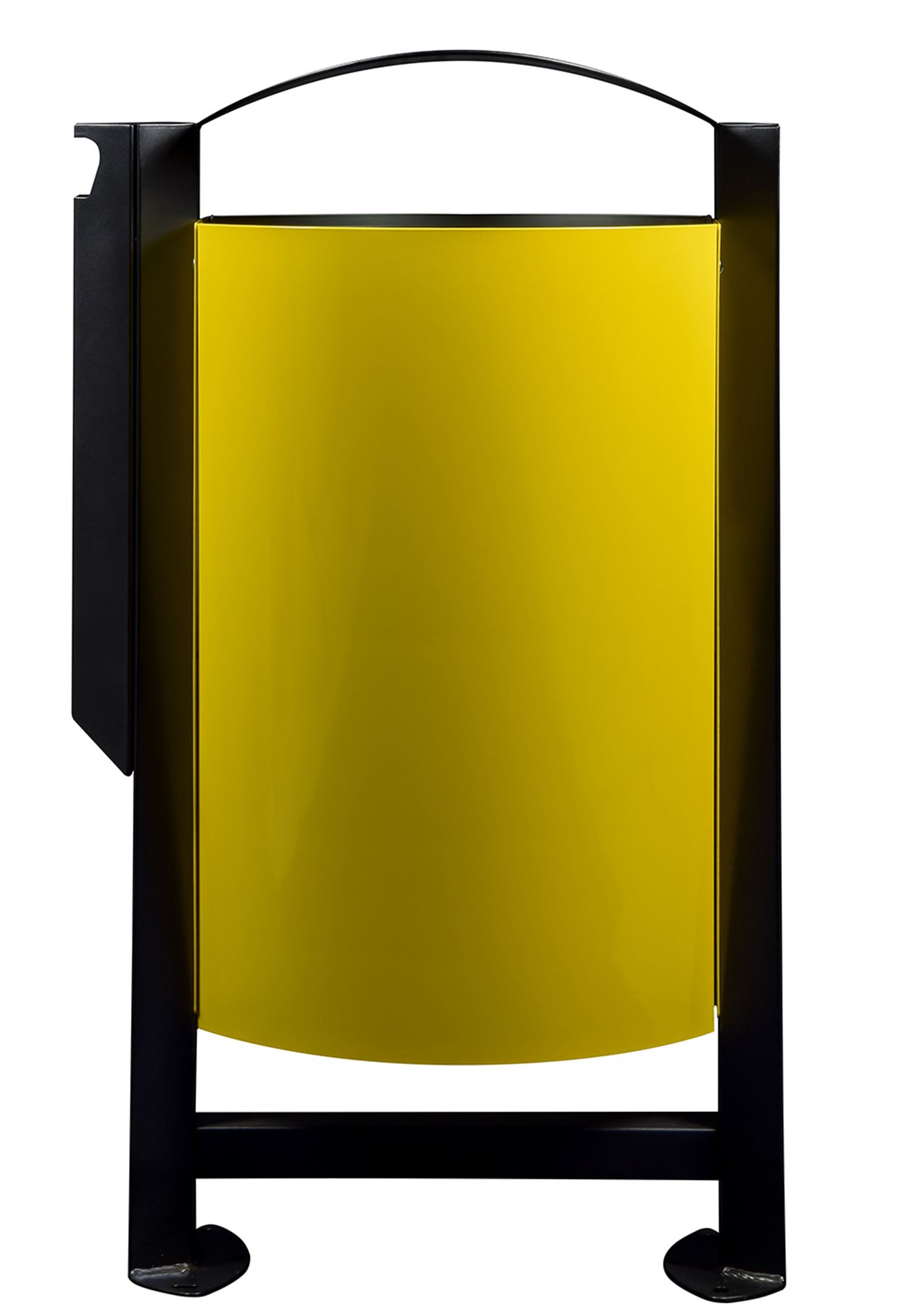 Poubelle de tri sélectif en métal 2X40 litres deux flux. Couleur jaune et grise. Poubelle intégrant un cendrier latéral.