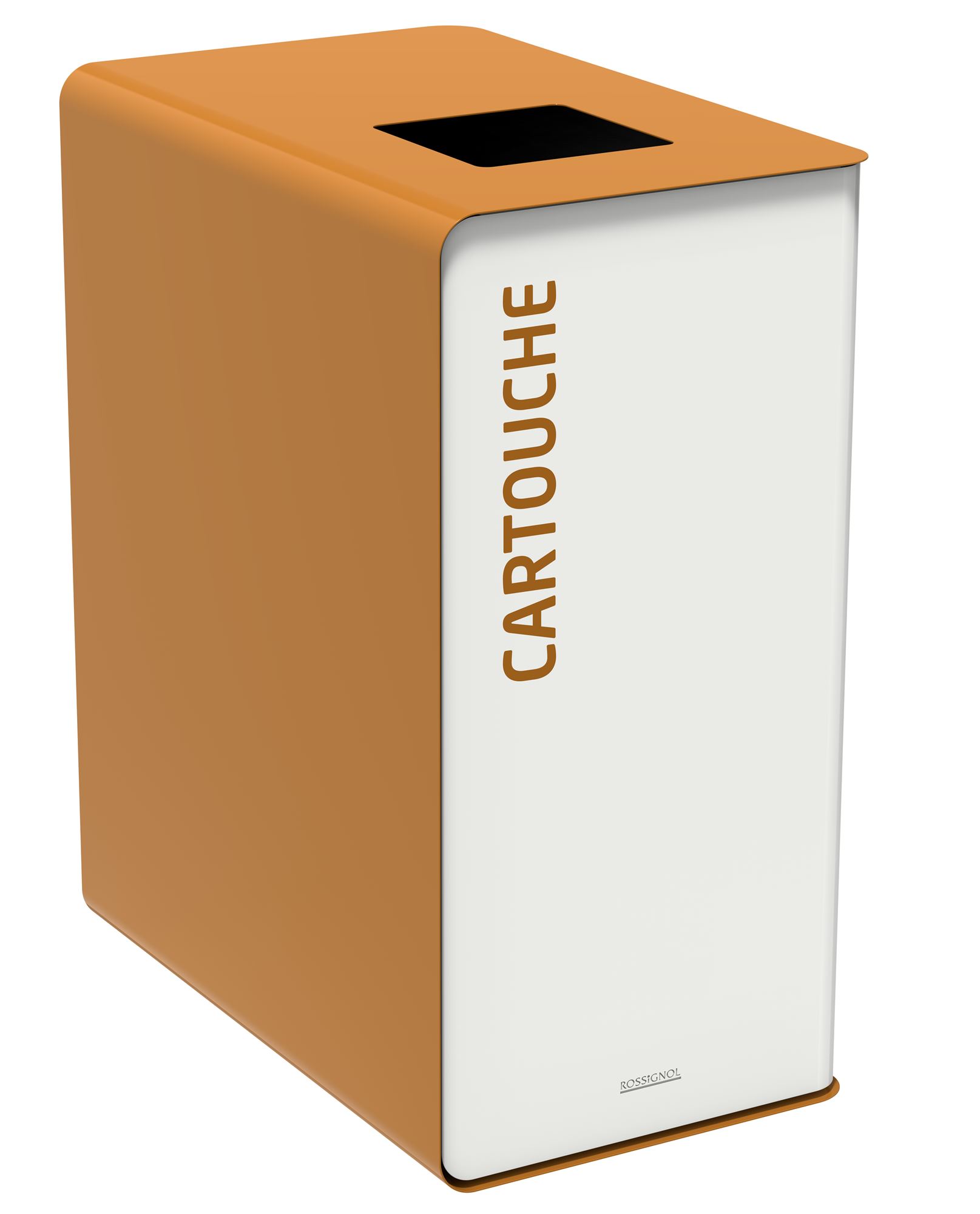Poubelle de tri sélectif 65L. Poubelle de tri pour cartouches. Ligne Cubatri Rossignol. La poubelle de tri sélectif cubatri de Rossignol fait 65L. La poubelle de tri sélectif cubatri se transforme en borne de tri si vous la composez avec d'autres poubelles. L'îlots de tri est possible côte à côte ou dos à dos. Le vidage de la poubelle est pratique grâce au bac intérieur plastique roulant intégré. L'ouverture se fait sur l'avant et la borne de tri possède le système d'ouverture push/ pull.