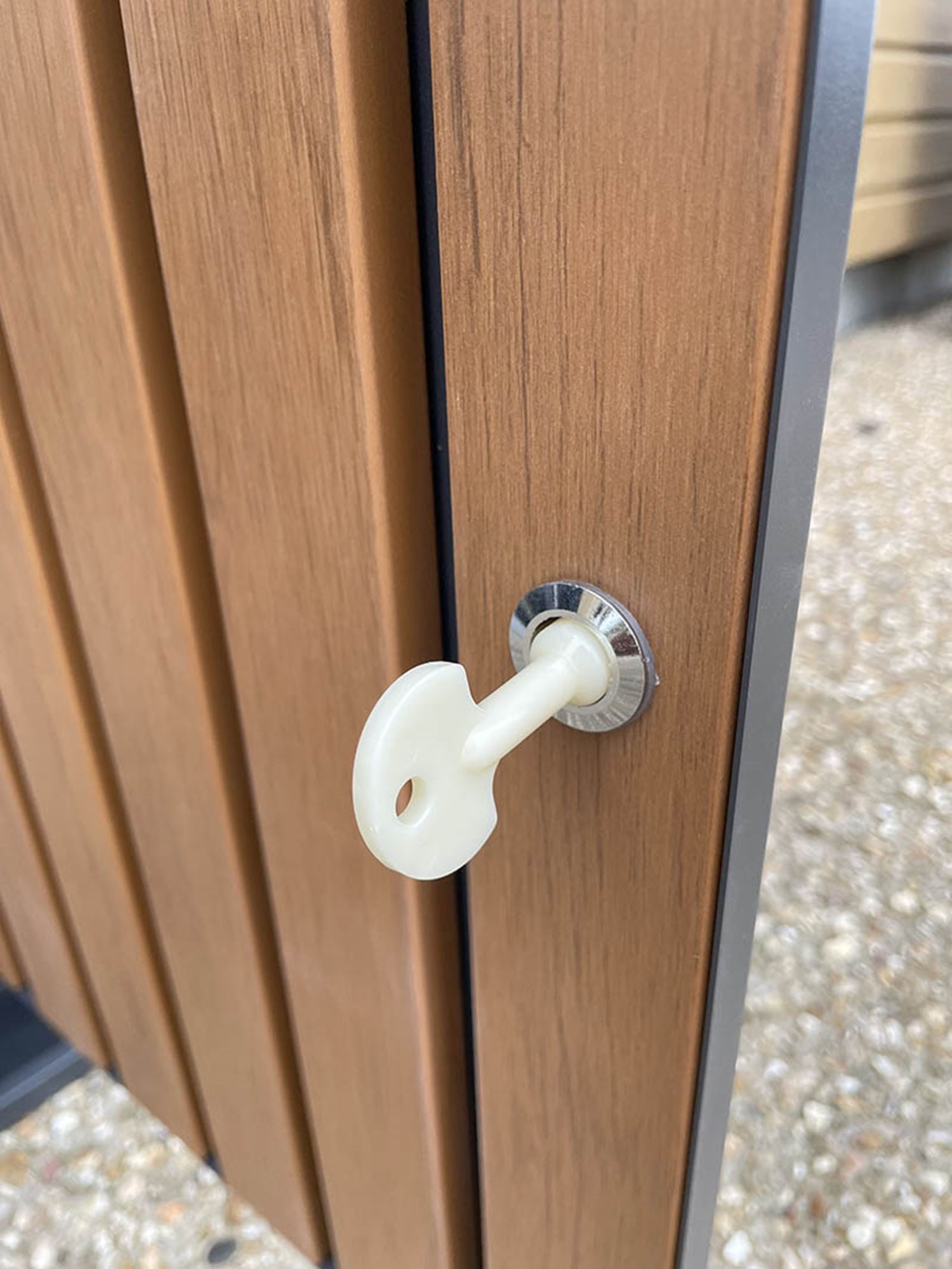 Fermeture par clef triangulaire pour sécuriser la poubelle.