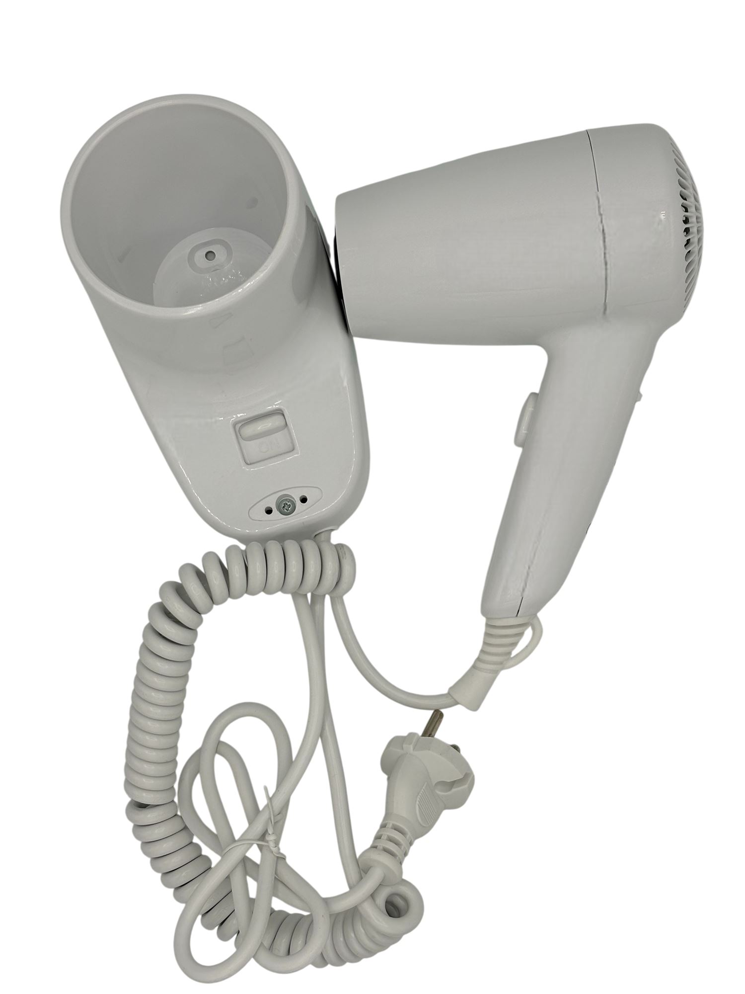 Le sèche cheveux hôtel mural a une dimension très compacte. Puissance de 1200 watts. Alimentation en 230 V. Fixation murale. Vitesse réglable deux vitesses. Température chaud ou froid.