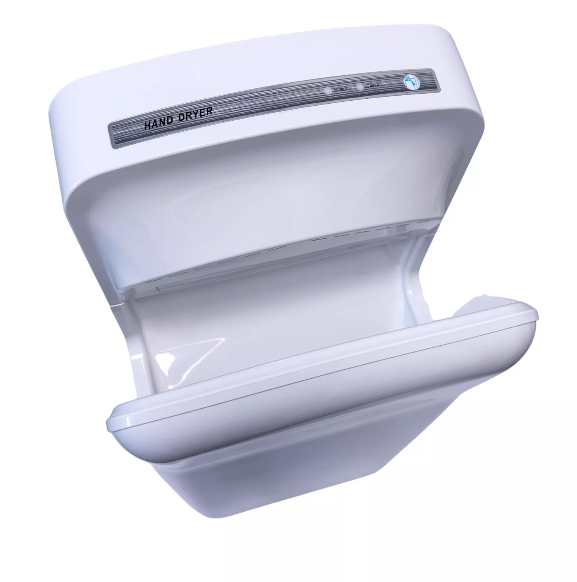 Sèche mains air pulsé vertical blanc. Classe II IPX4. Certification CE et RoHS. Résistance chauffante. Capot en ABS blanc. Vitesse d'air 324 km/h. Temps de séchage de 7 à 10 secondes. Direct fabricant.
