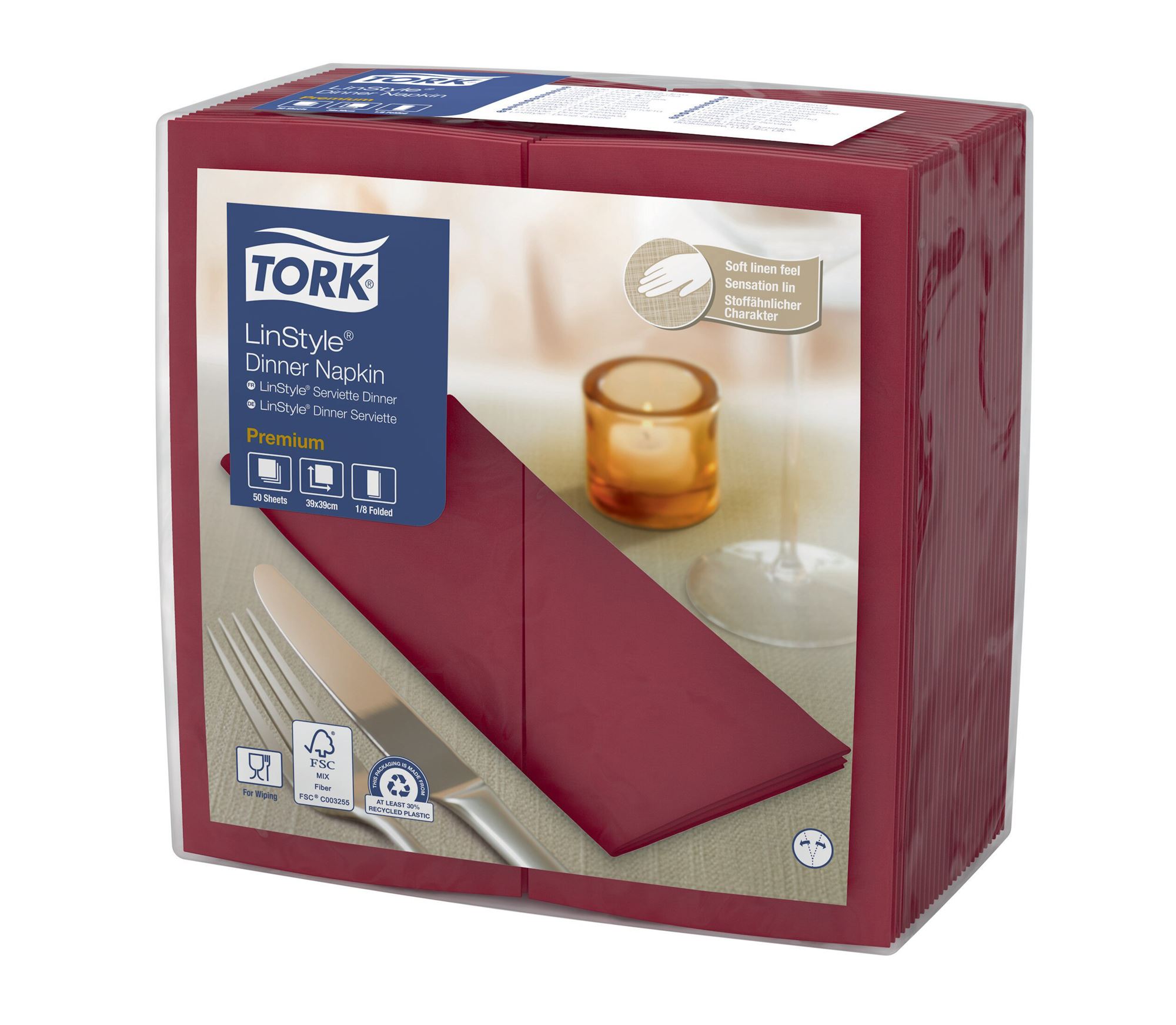 Serviette Tork Linstyle dinner bordeaux pliage en 1/8