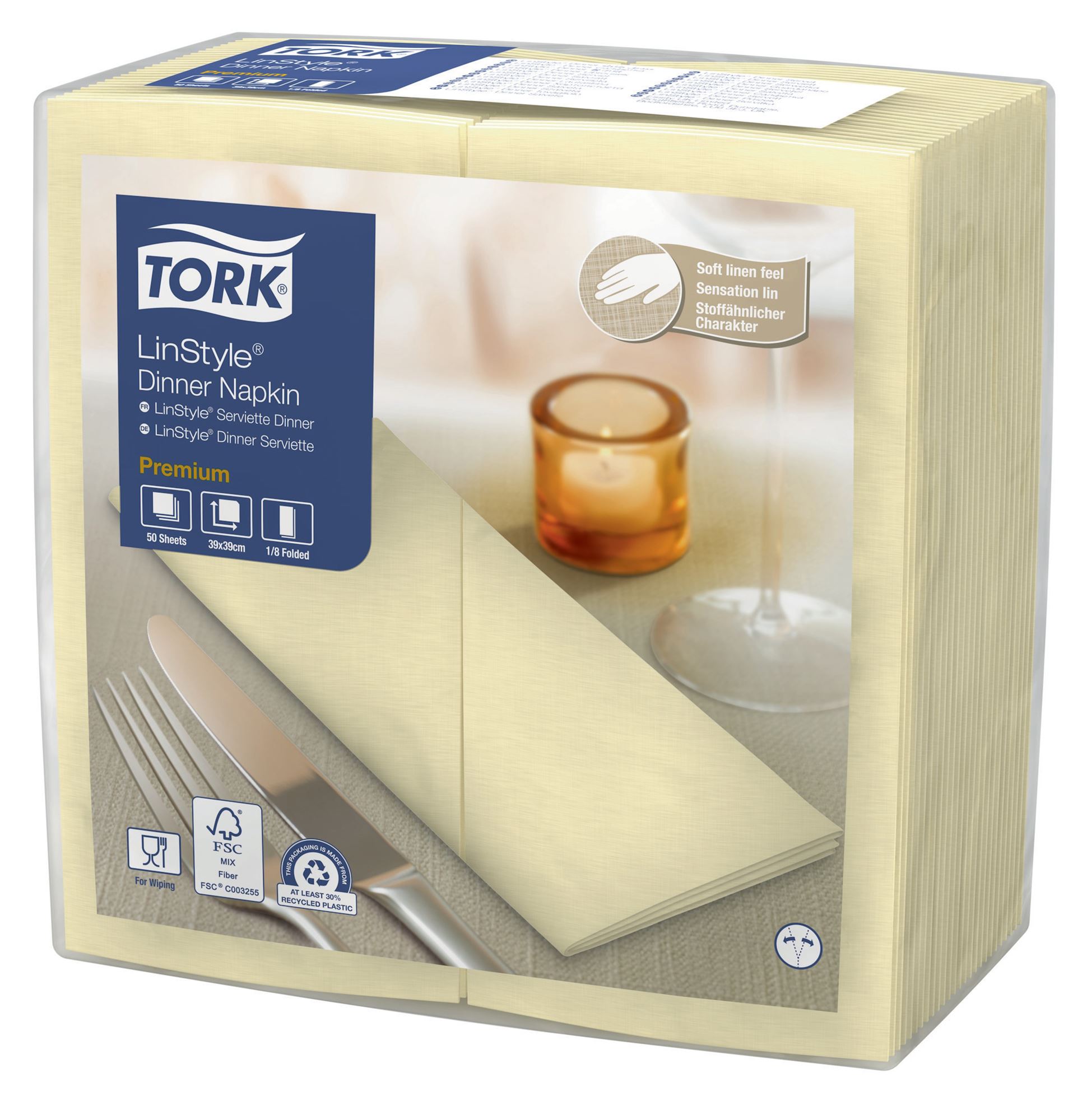Tork Linstyle champagne pliage en 8 est la serviette est idéale pour les restaurants, où la qualité est particulièrement importante. Le pliage 8 permet une mise en place avec les couverts plus élaborée. Aspect et toucher du textile doux et épais.