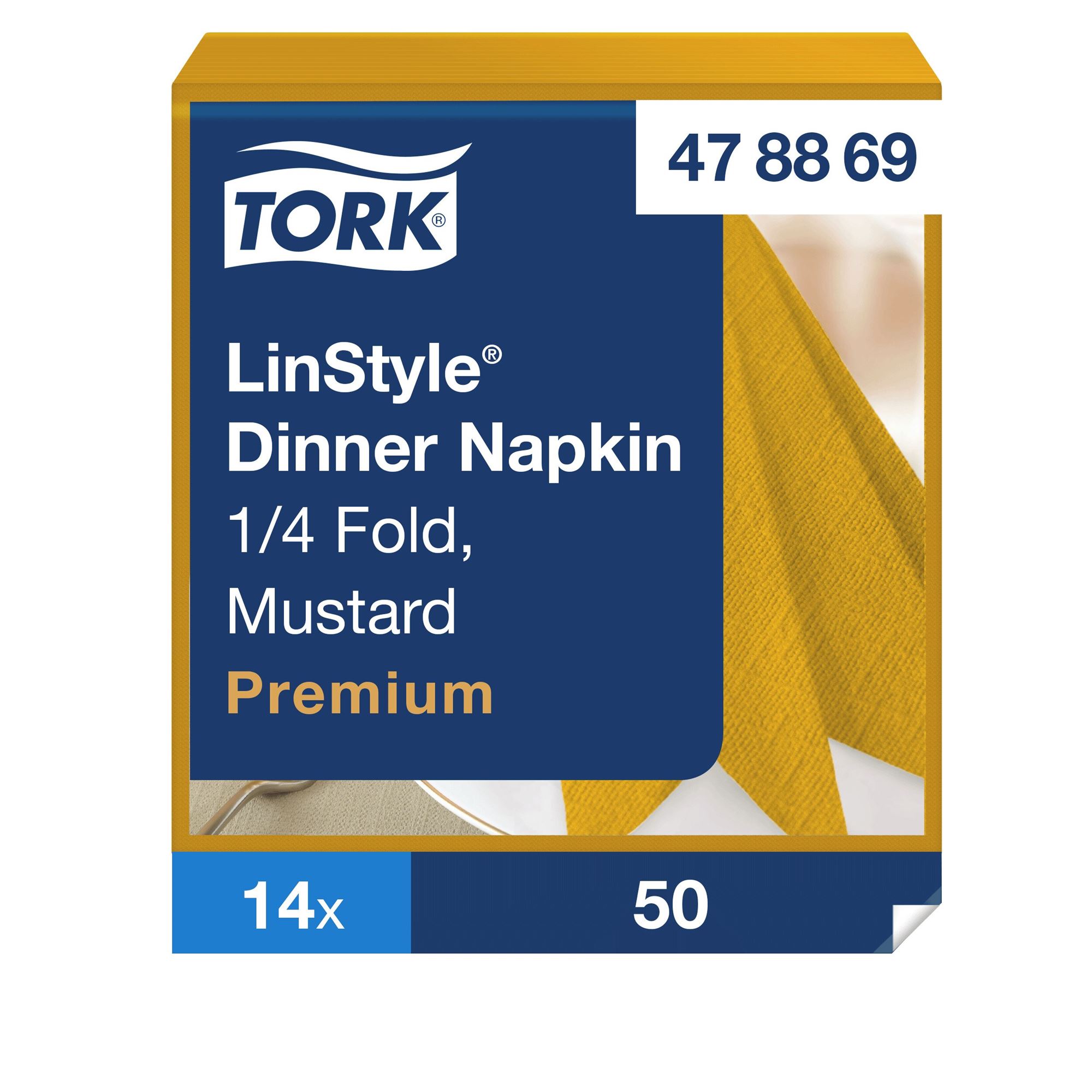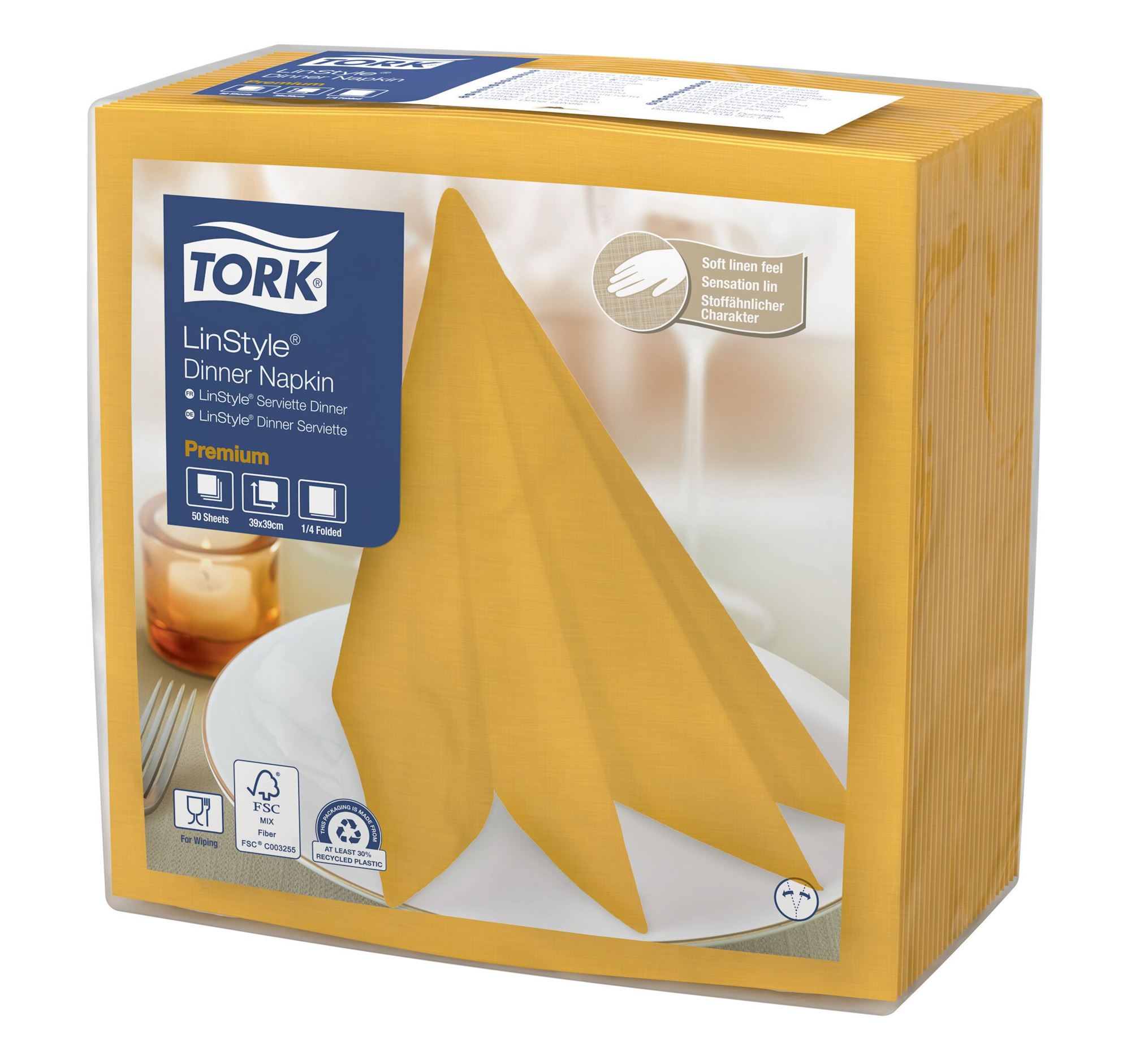 Serviette Tork Linstyle dinner coloris jaune moutarde.