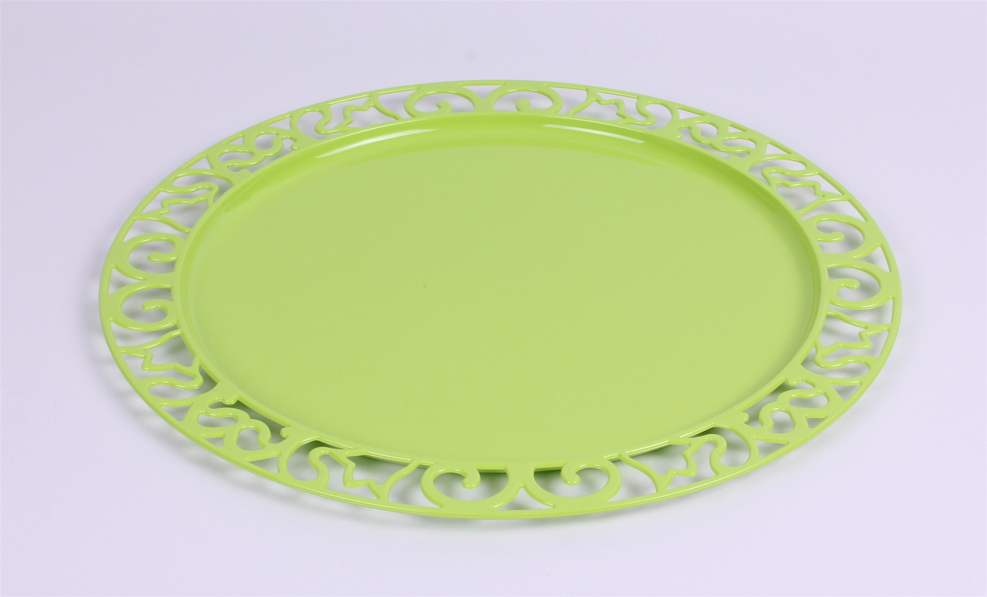 Sous assiette plastique réutilisable couleur anis de forme ronde diamètre 300 mm. Sous assiette fabriquée en France en PS. Réutilisable et contact alimentaire.