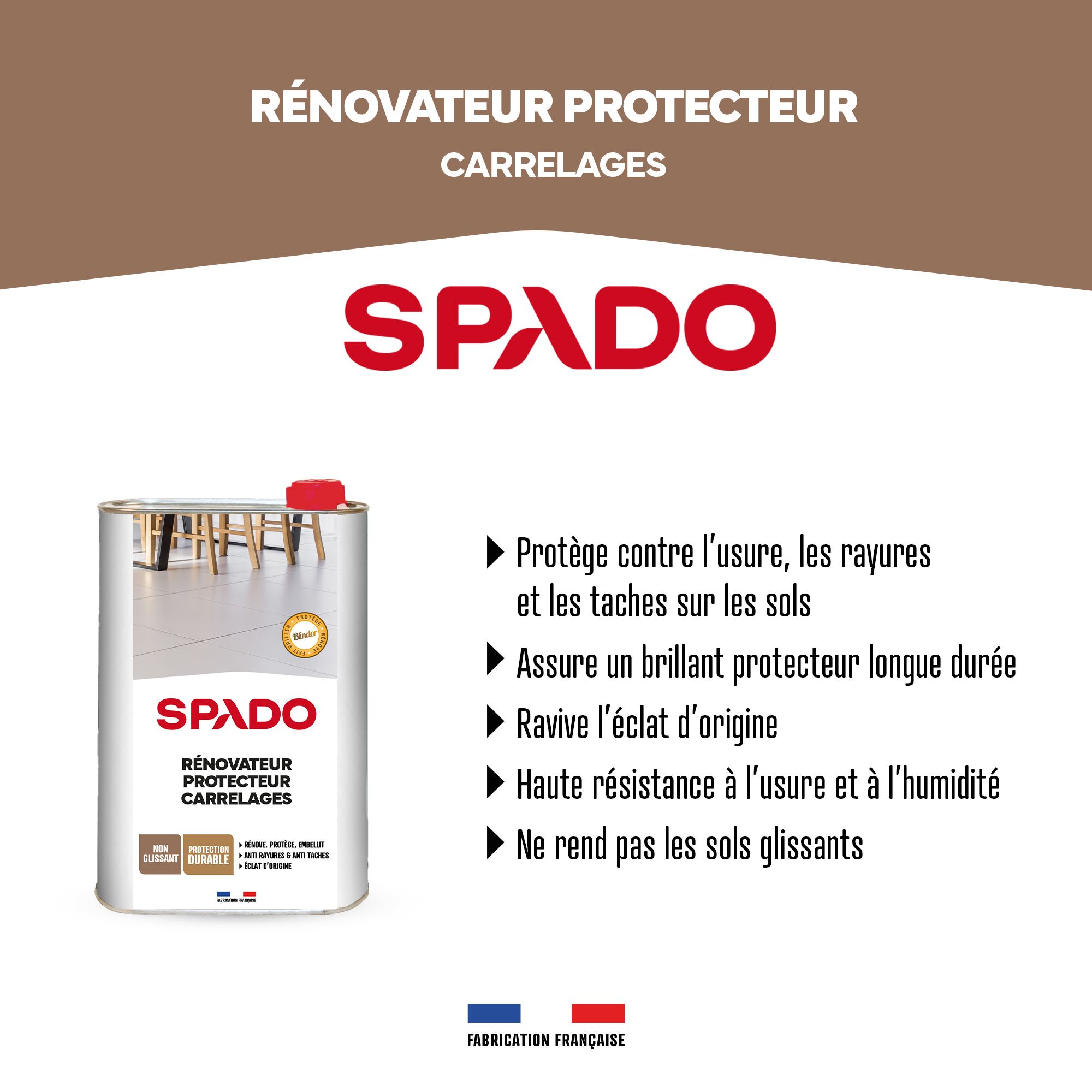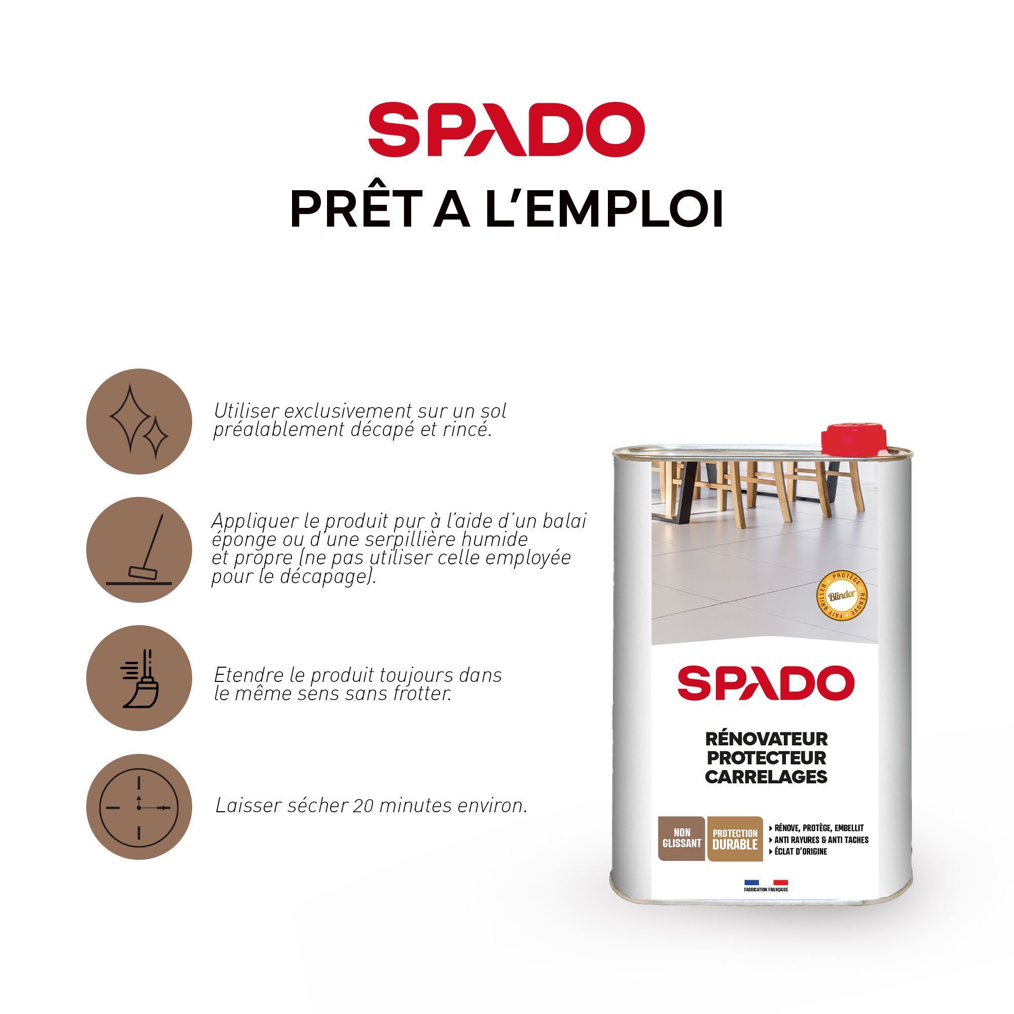 La cire carrelage et vinyle blindor de Spado ravive la couleur de votre sol. La cire carrelage  blindor de Spado rénove et fait briller votre carrelage.