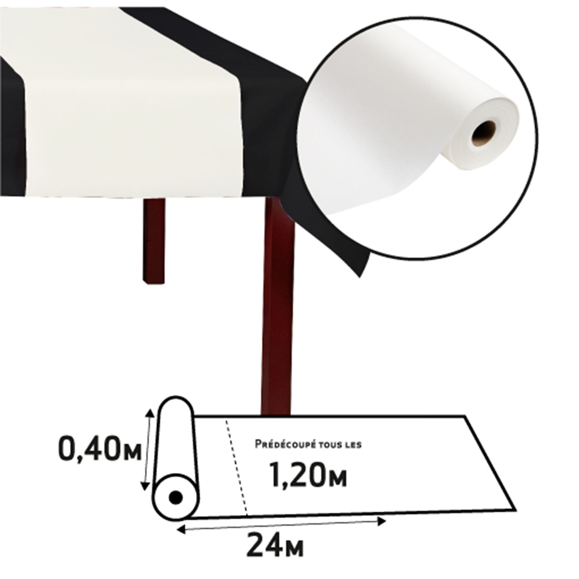 - Dimensions rouleau : 24 m x 0,40 m