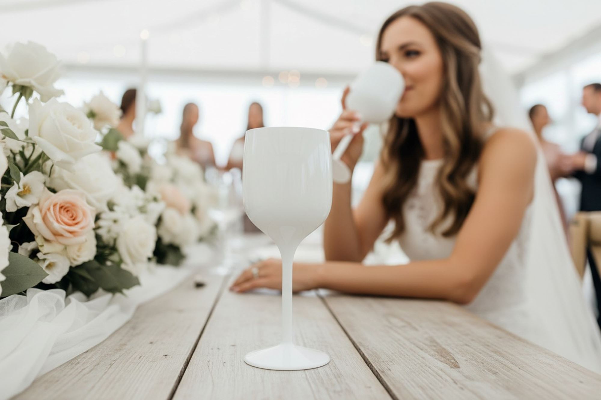 Le verre à pied réutilisable blanc possède une contenance de 30cl. Le verre à pied blanc en plastique peut se réutiliser car il se lave facilement.