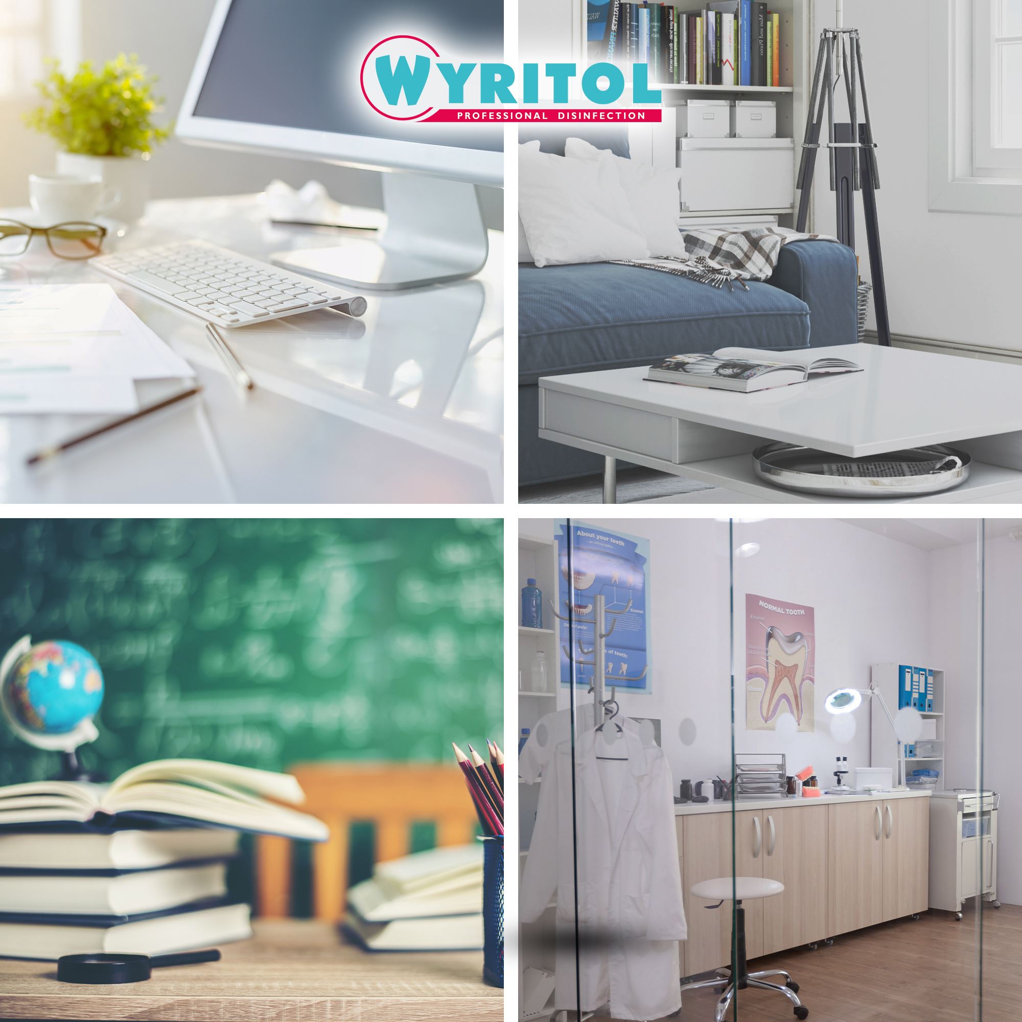 Wyritol désinfectant sans allergènes est idéal pour plans de travail et environnement de cuisine, matériel médical, puériculture, poignées, digicodes, claviers, bureaux, tables…Wyritol est utilisé pour la désinfection des jouets en crèche en collectivité ou garderie.